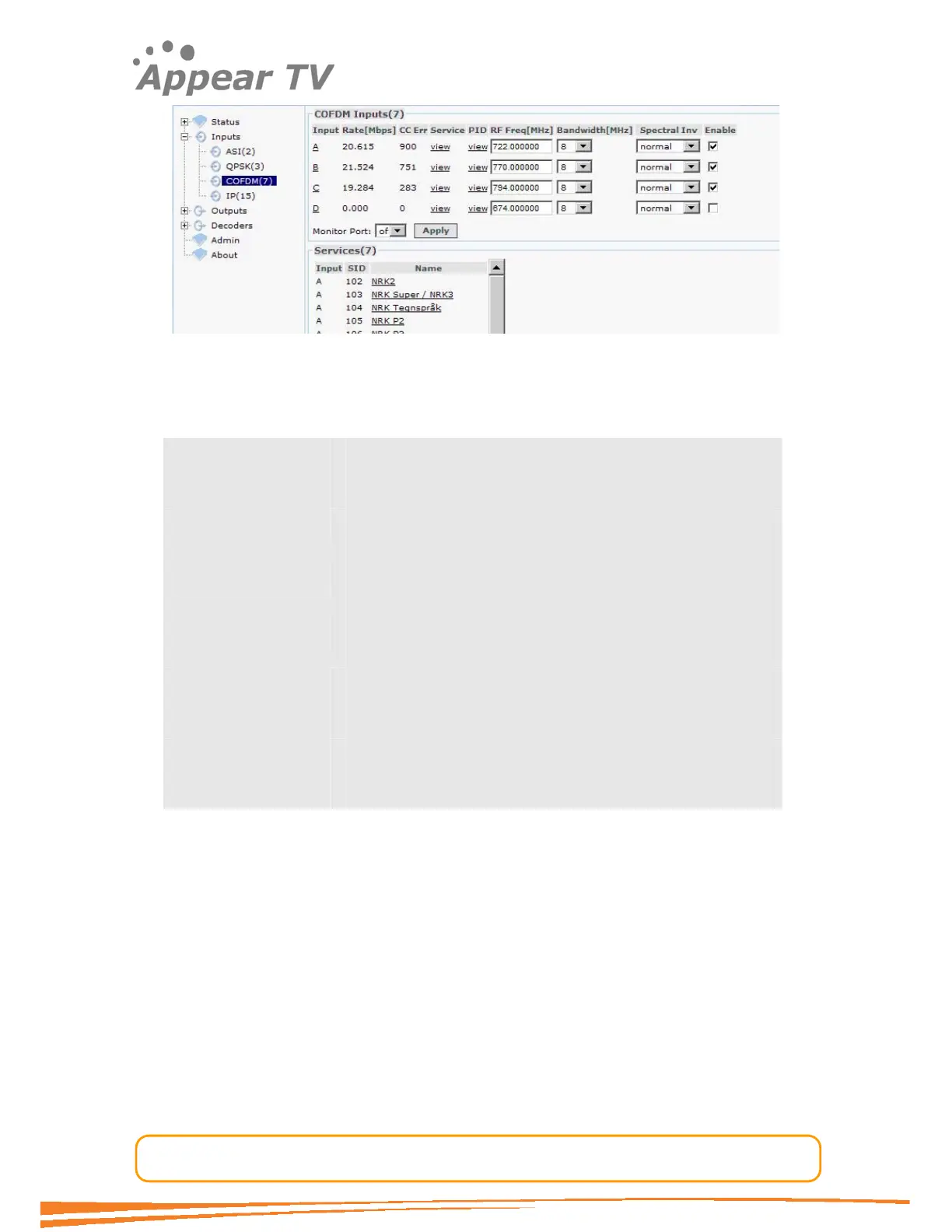 The status parameters for the COFDM module are shown in figure below. Click on the