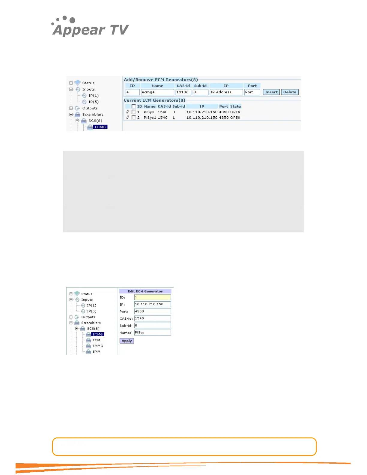 Appear TV DC1000 - Configure an ECM Generator Channel; Configure an ECM Stream