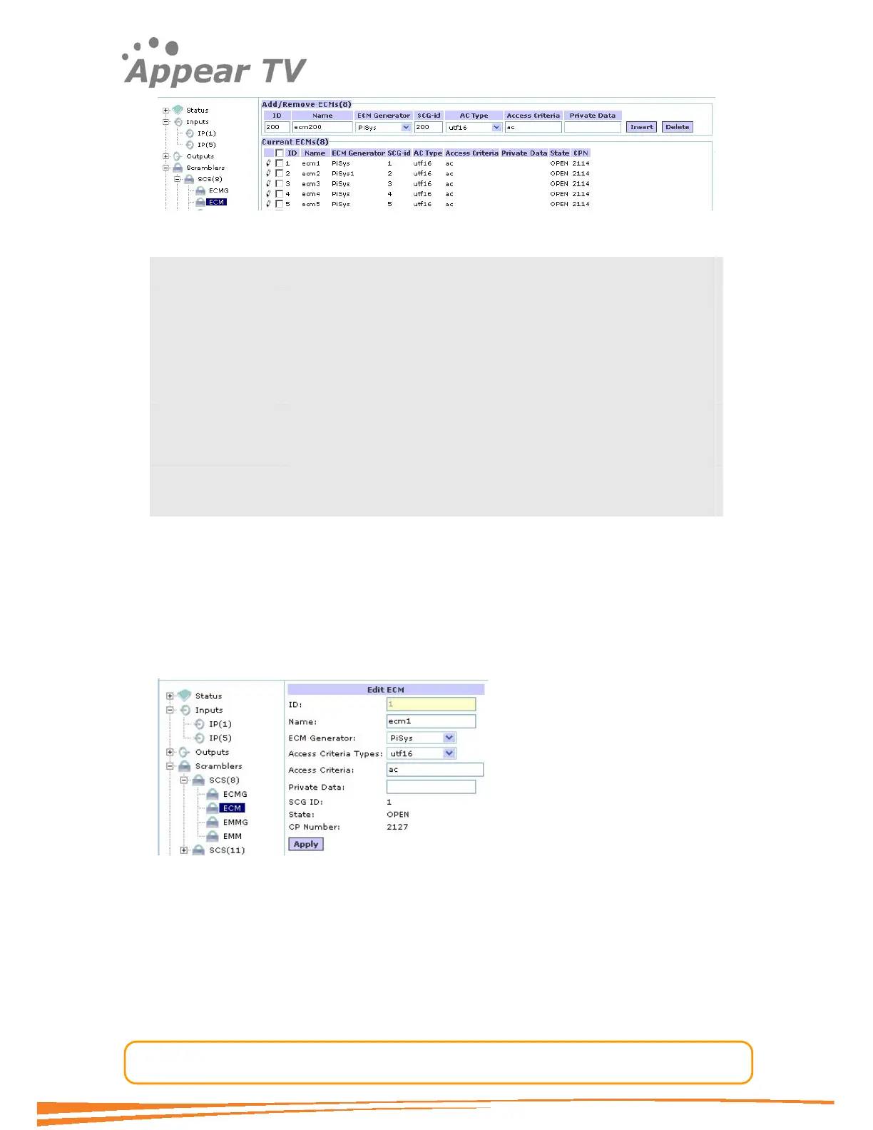 Note that at this point the ECM stream is defined and the CA system and the SCS