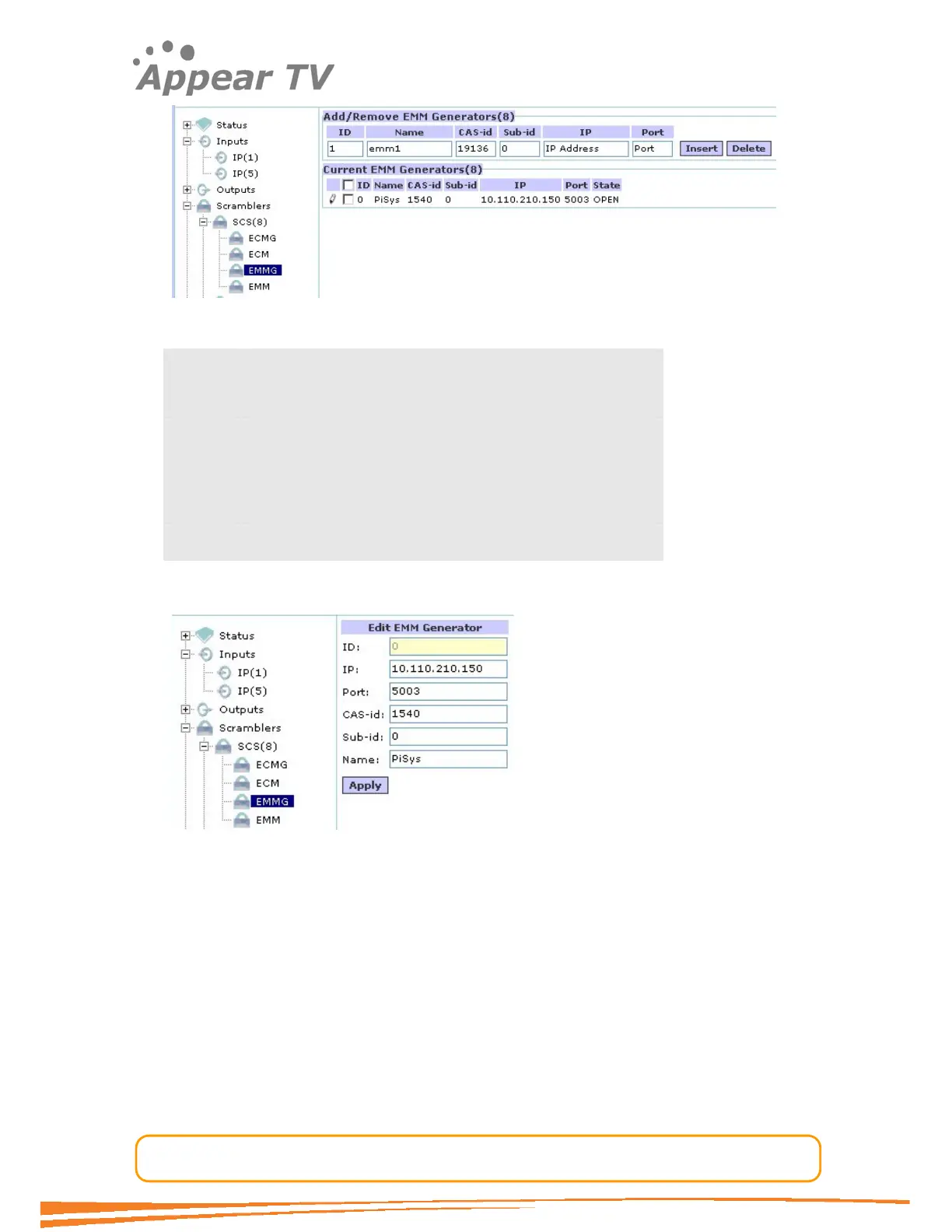 To change an EMMG channel connection click on the EMMG tab in the navigation tree,