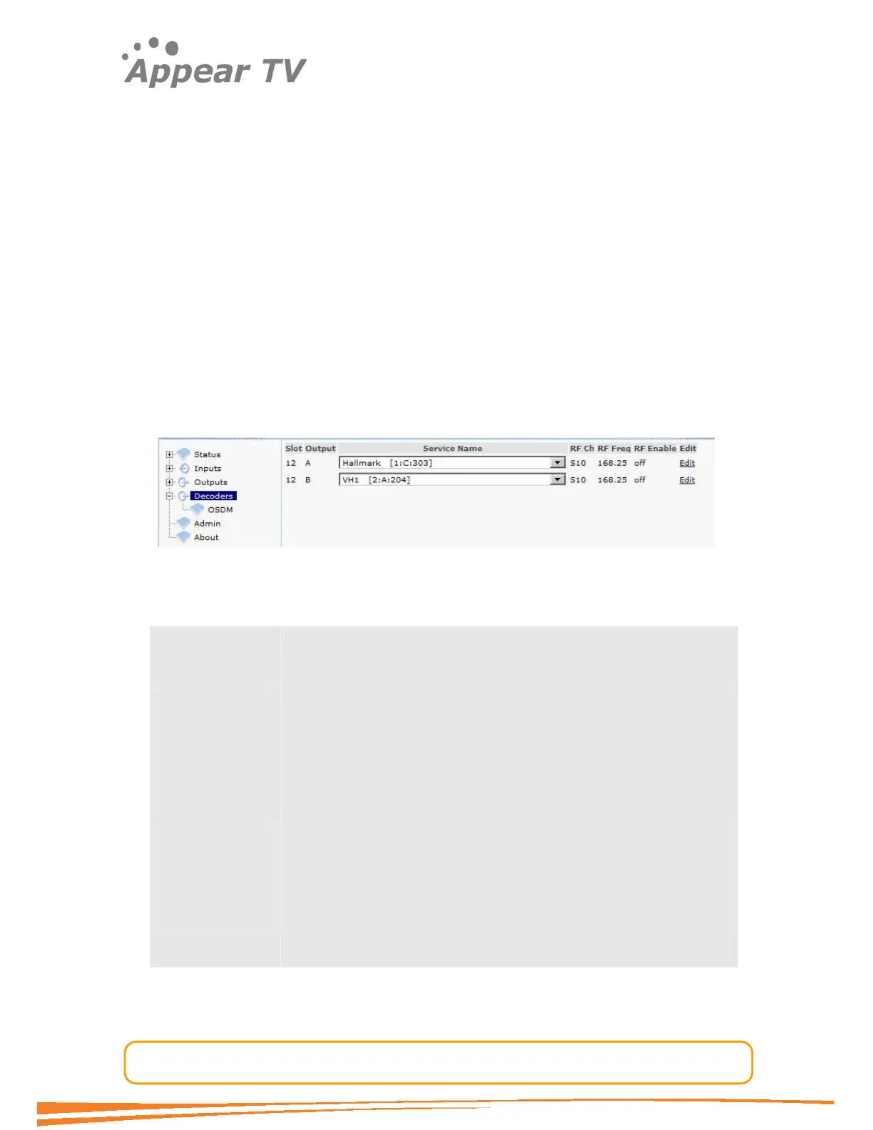 Appear TV DC1000 - Configuring Decoders; Channel Configuration