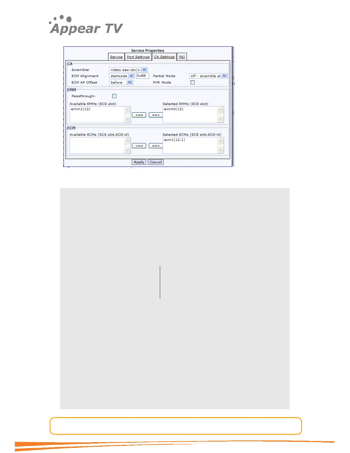 ECM Alignment Specifies where to insert the ECM relative to the GOP