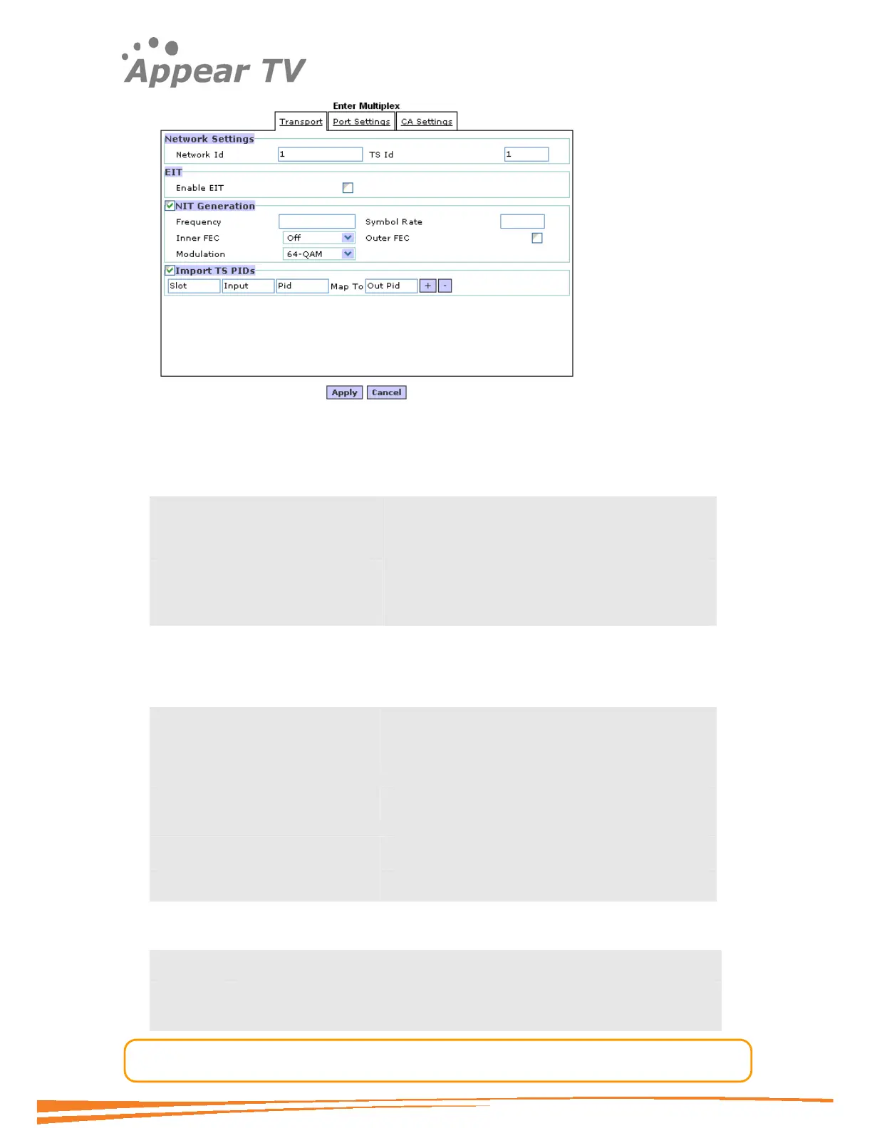 added into the NIT. Check the NIT Generation check box and enter the QAM