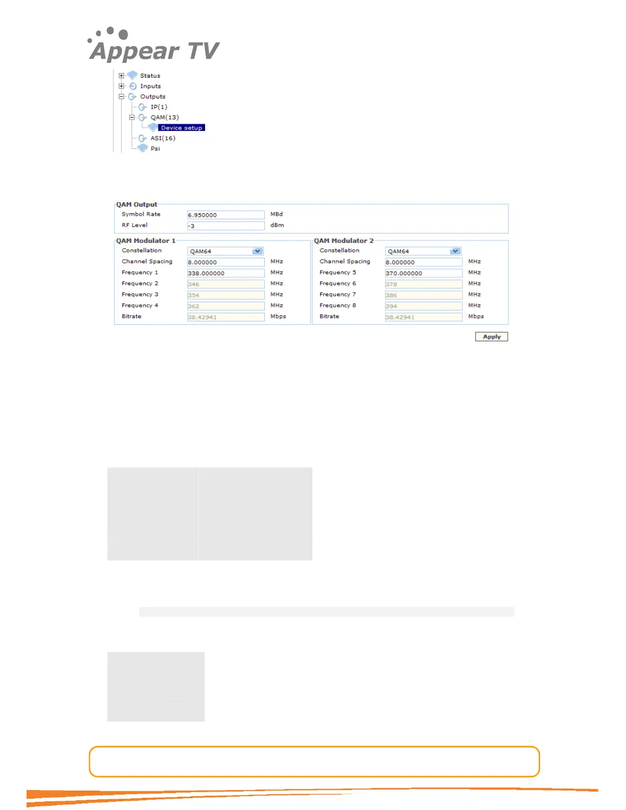The QAM symblorate and RF level is applicable to both modulators; while the other