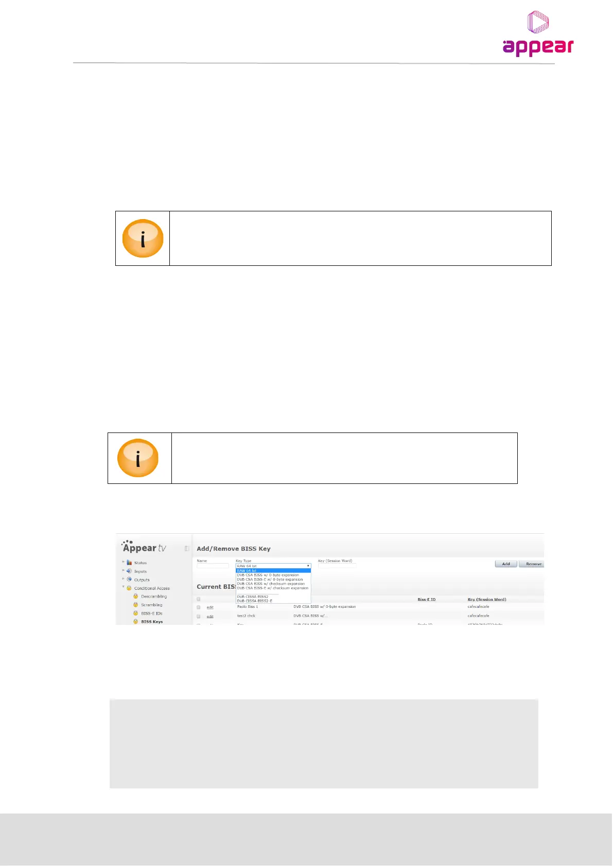 inserted using the CAM interface. Detailed explanation on BISS descrambling with