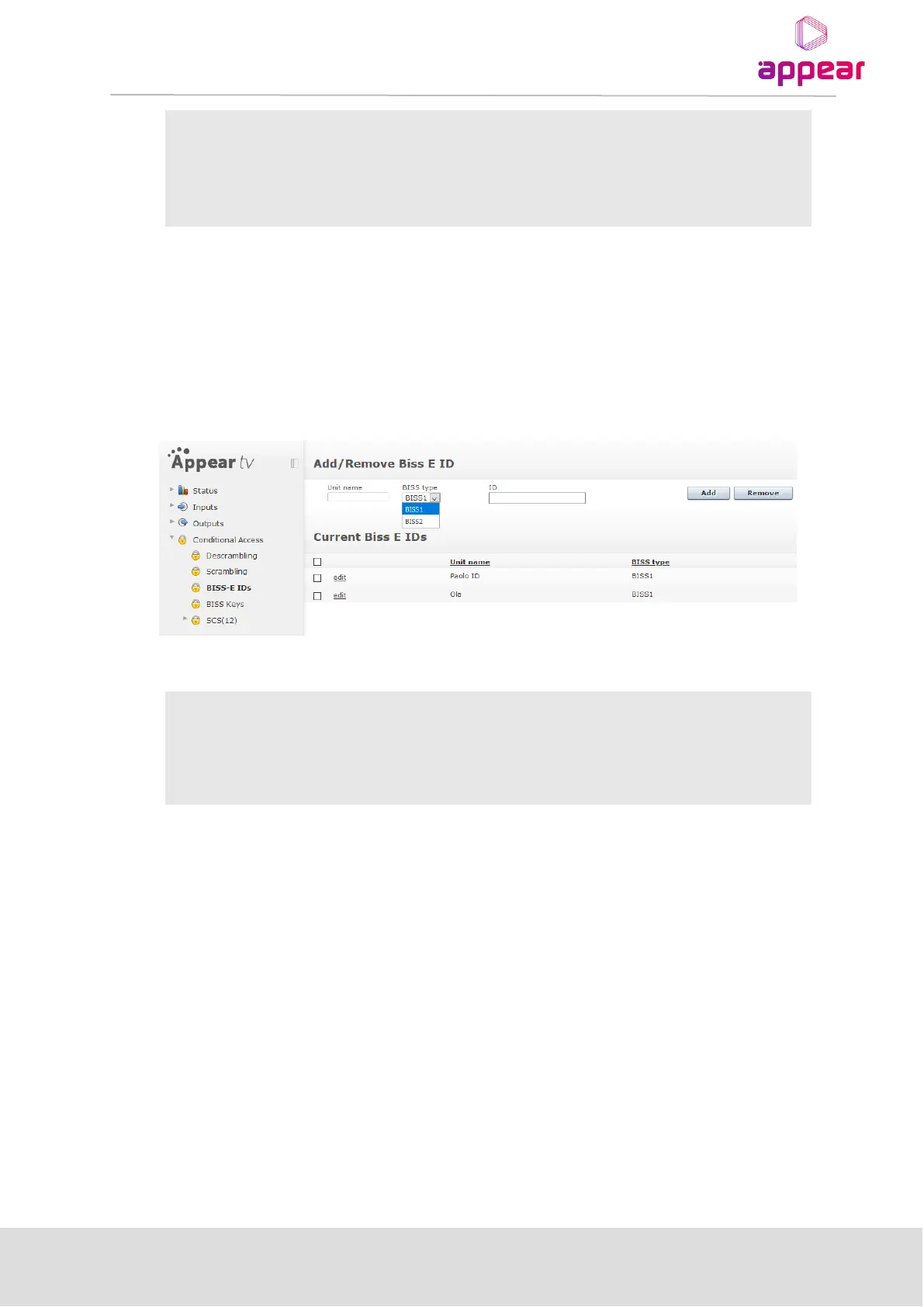 The page for BISS-E IDs is used to add in keys which can be used to encode/decode BISS-E keys. Please note,
