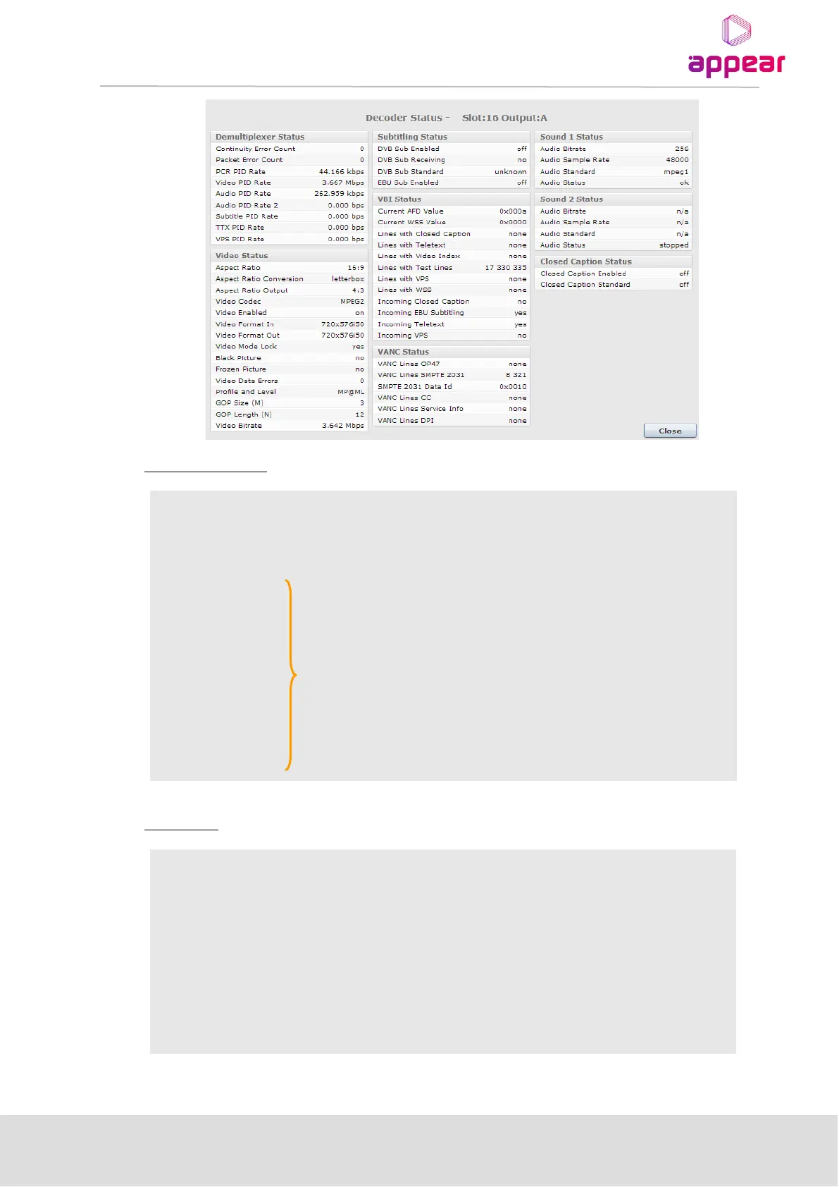 Number of errors for a particular channel – with a multiservice decoder, this