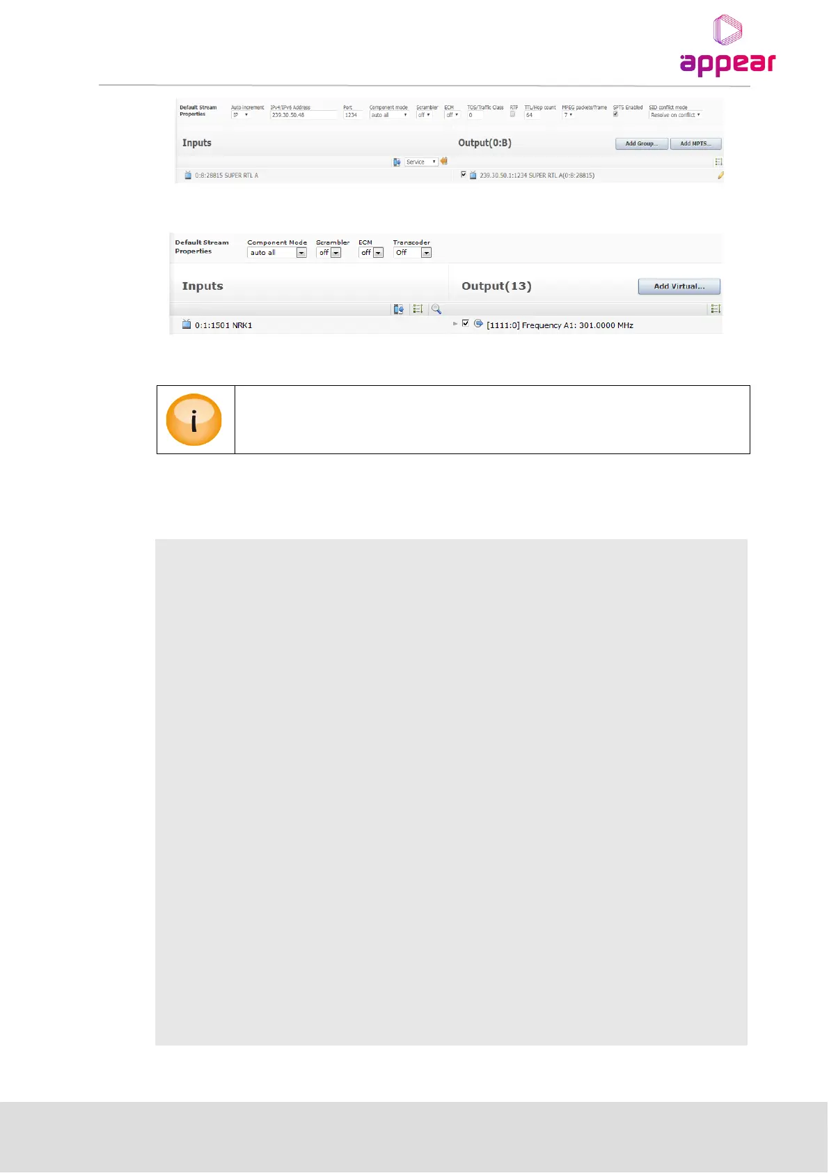 When creating an SPTS, the Default Stream Properties will be used and the IP address will be incremented.