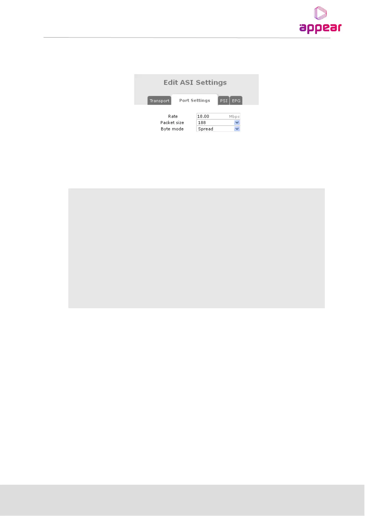 IP MPTS output, except for a different Port Settings tab.