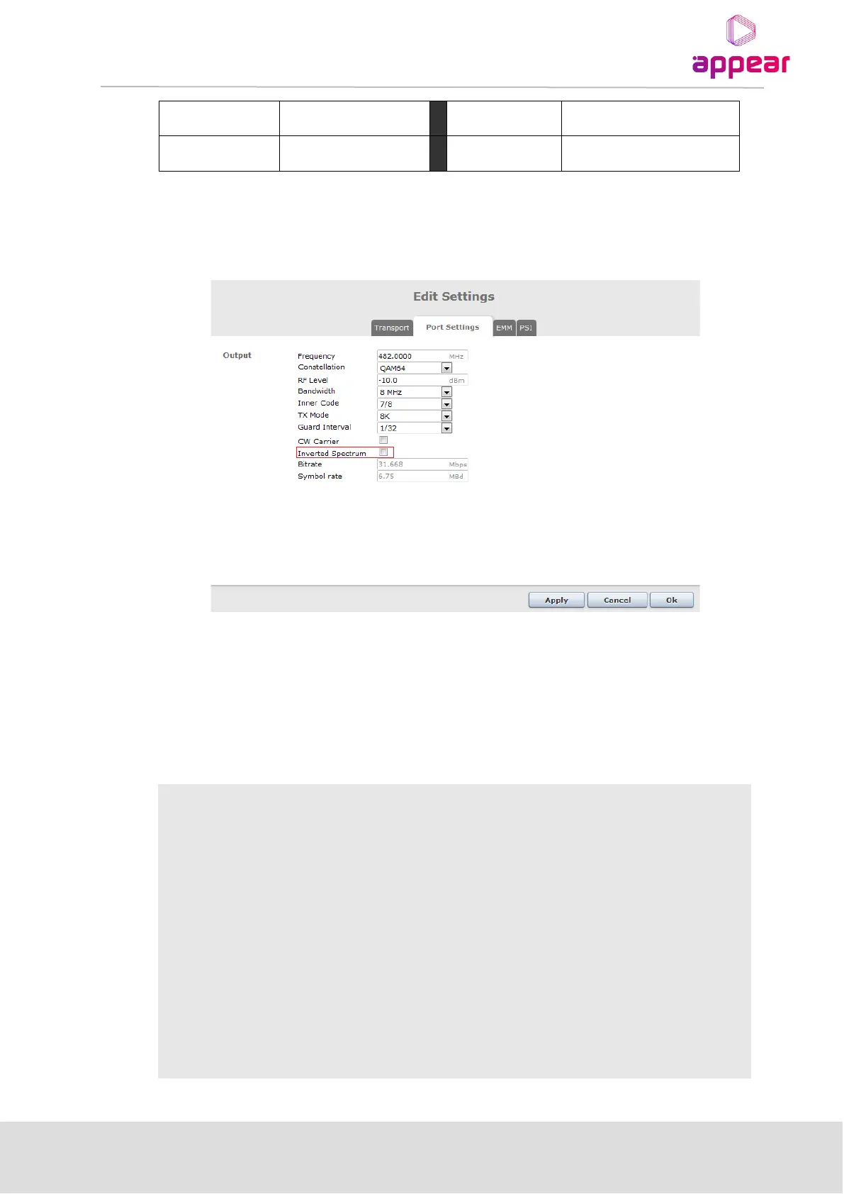 The Port Settings tab for a COFDM module allows for modulation settings of each individual channel to be