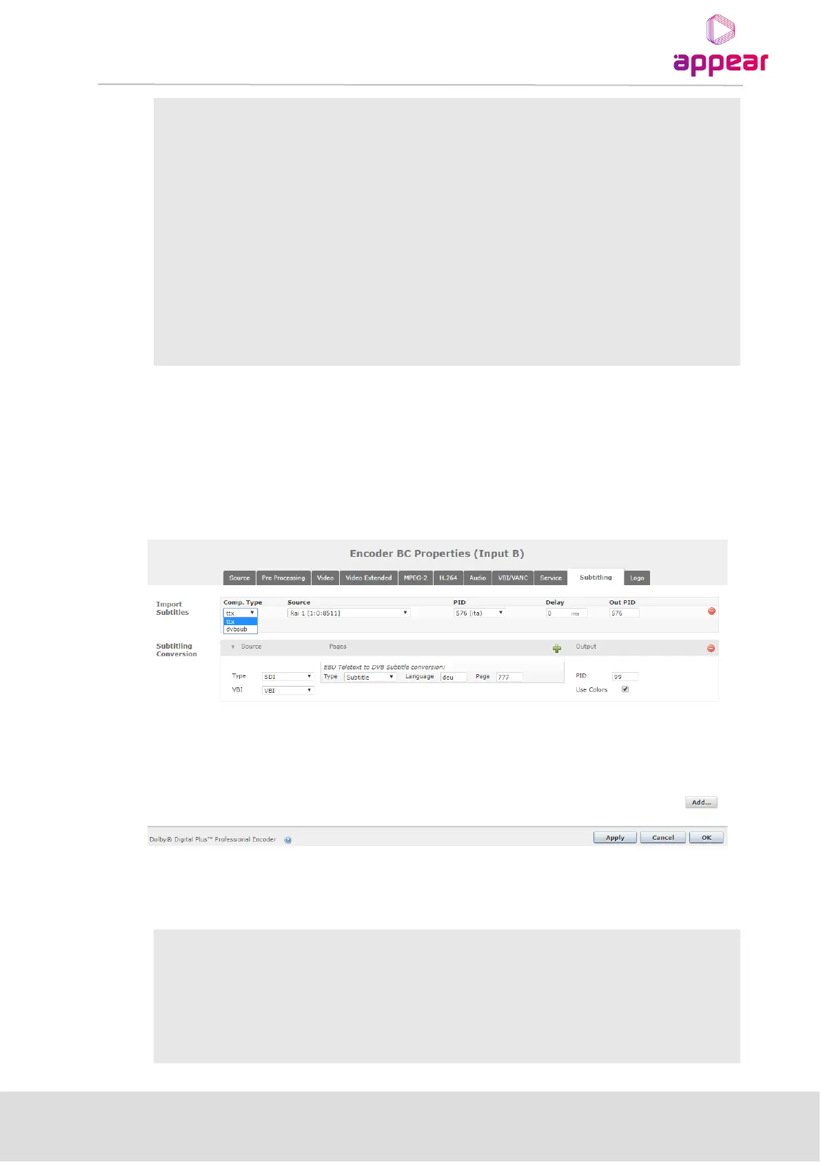Select if subtitles to be imported are Teletext/EBU (ttx) or DVB (dvbsub)