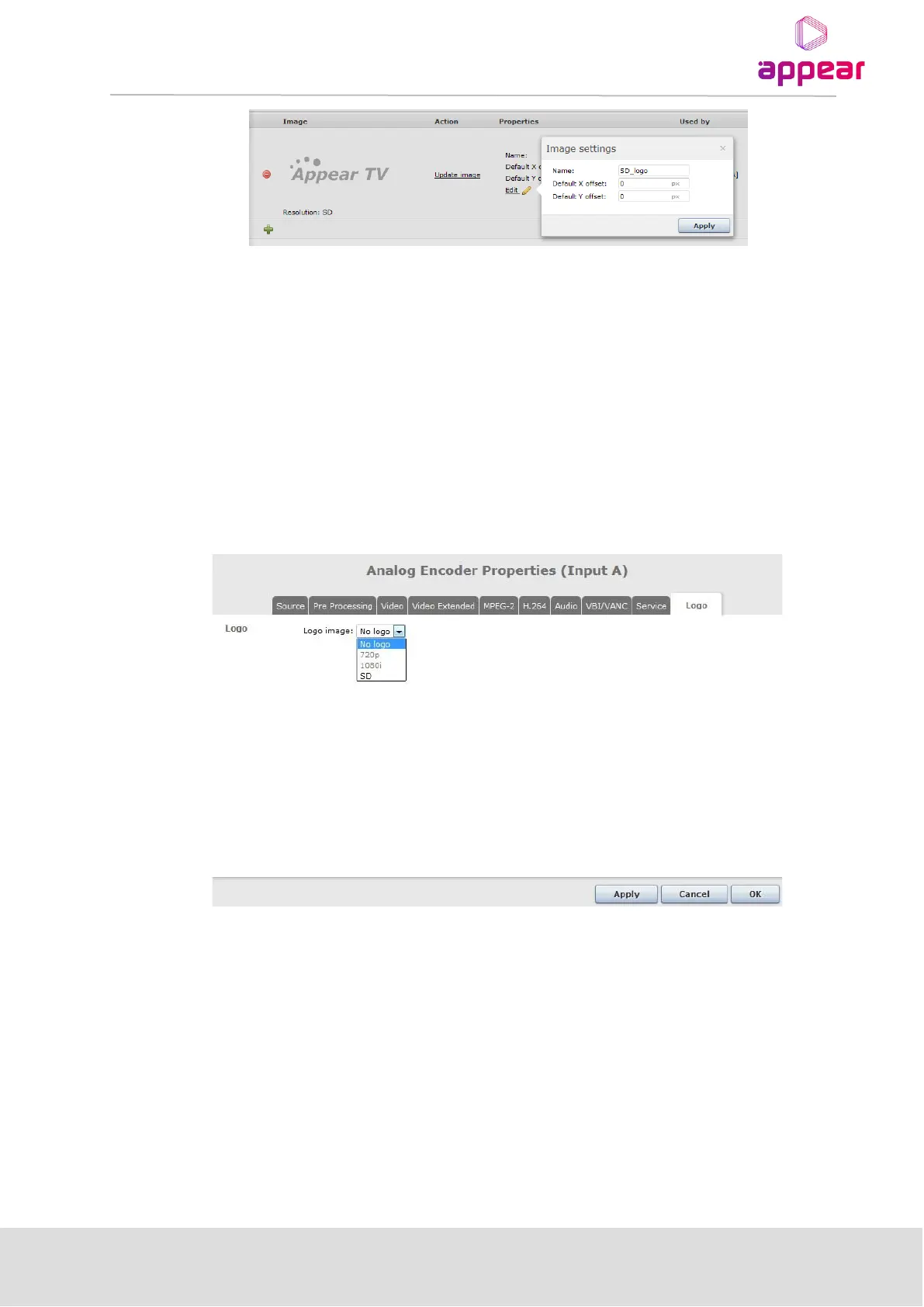 Once there is a valid logo on the MMI (section 0), then it is possible to assign this to an Encoder, Transcoder or