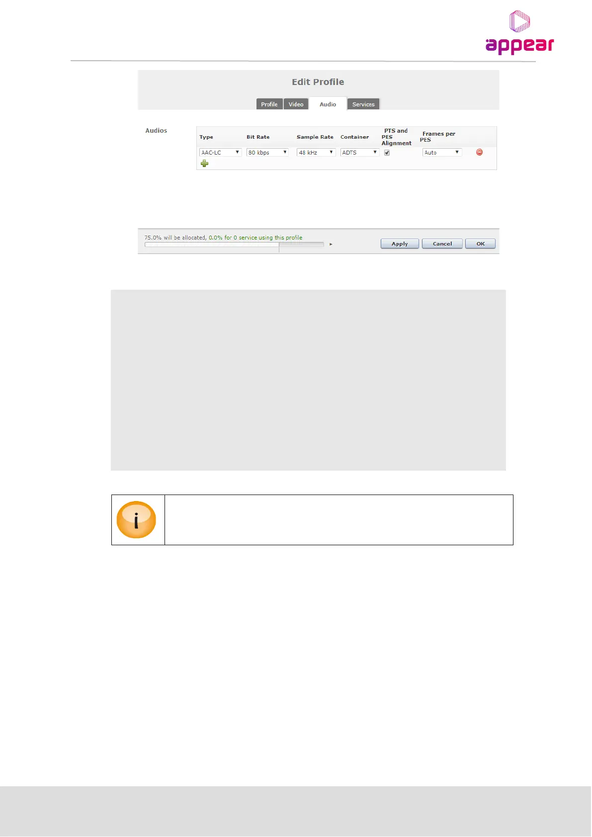 assigned to a service to be part of the generated output transport streams. The audio formats can be auto-