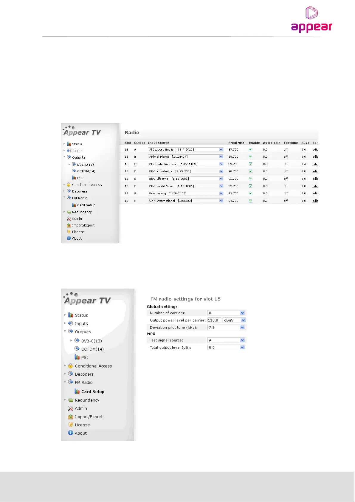 for the module you would like to configure. The FM radio settings page below will be displayed: