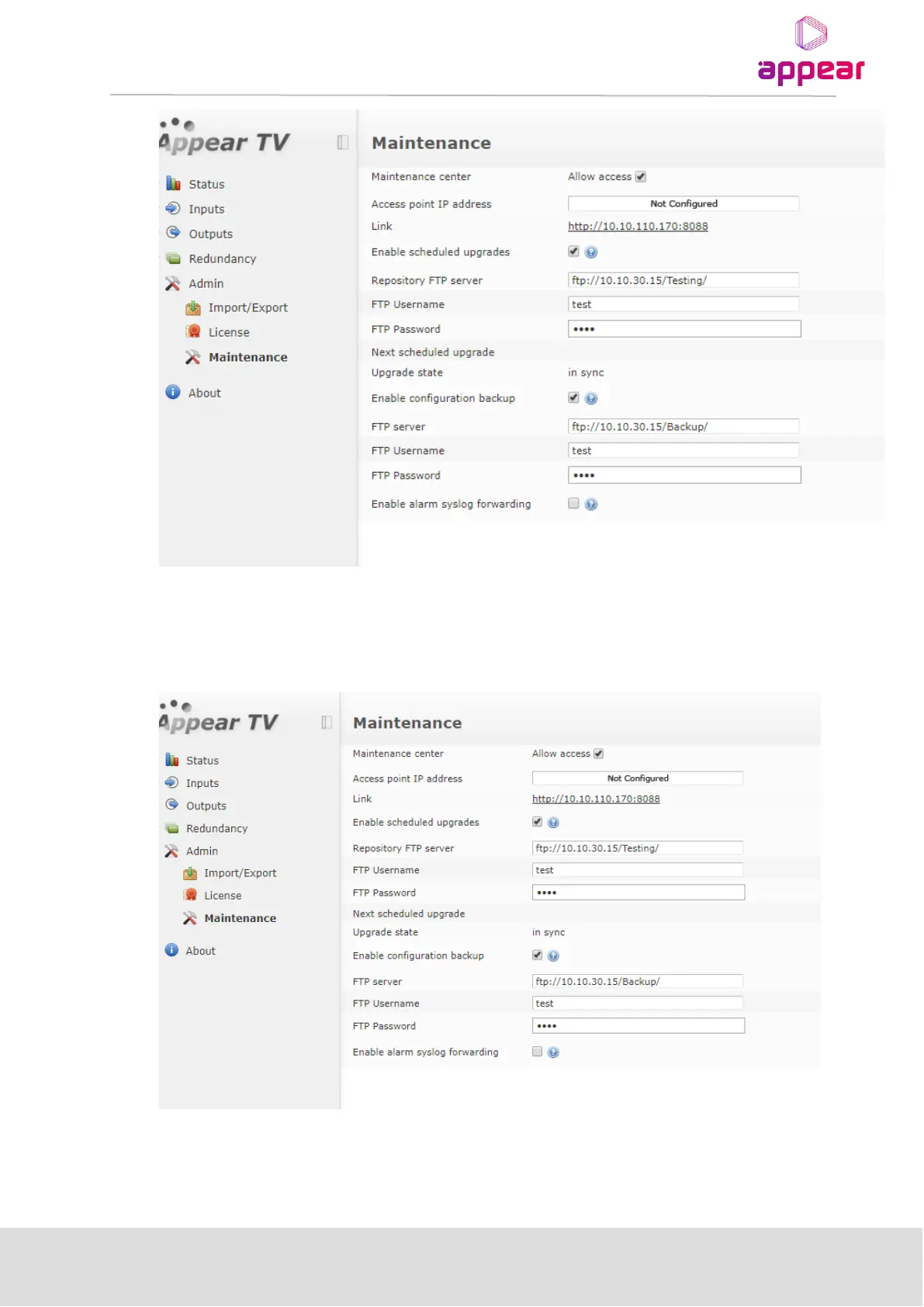 Appear TV DC100X - Support for Configuration Backup