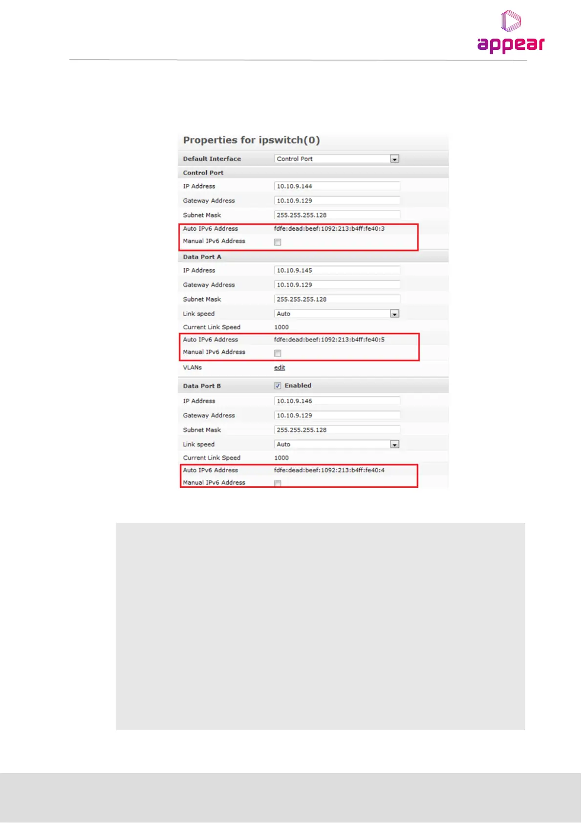 When enabling Manual IPv6 Address, the port can be configured with a