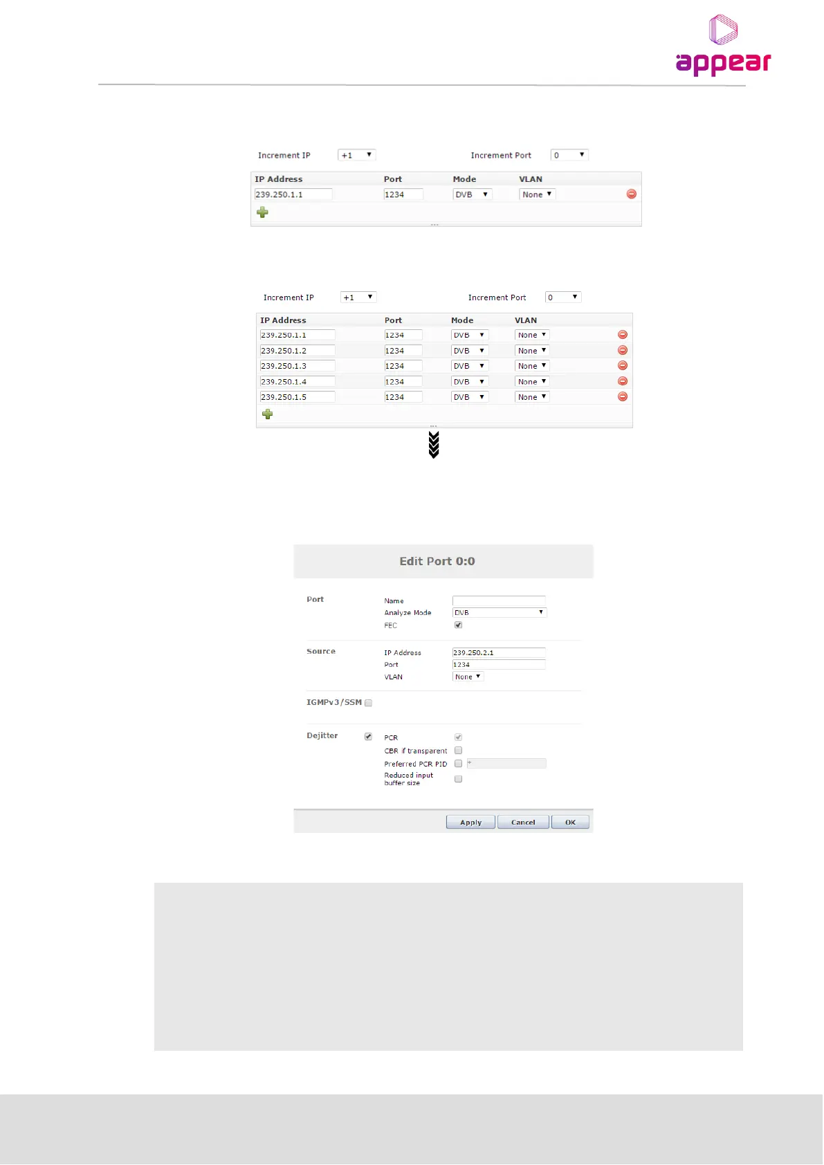 Extending the dialog box down will add more multicasts based on the ‘Increment’ settings: