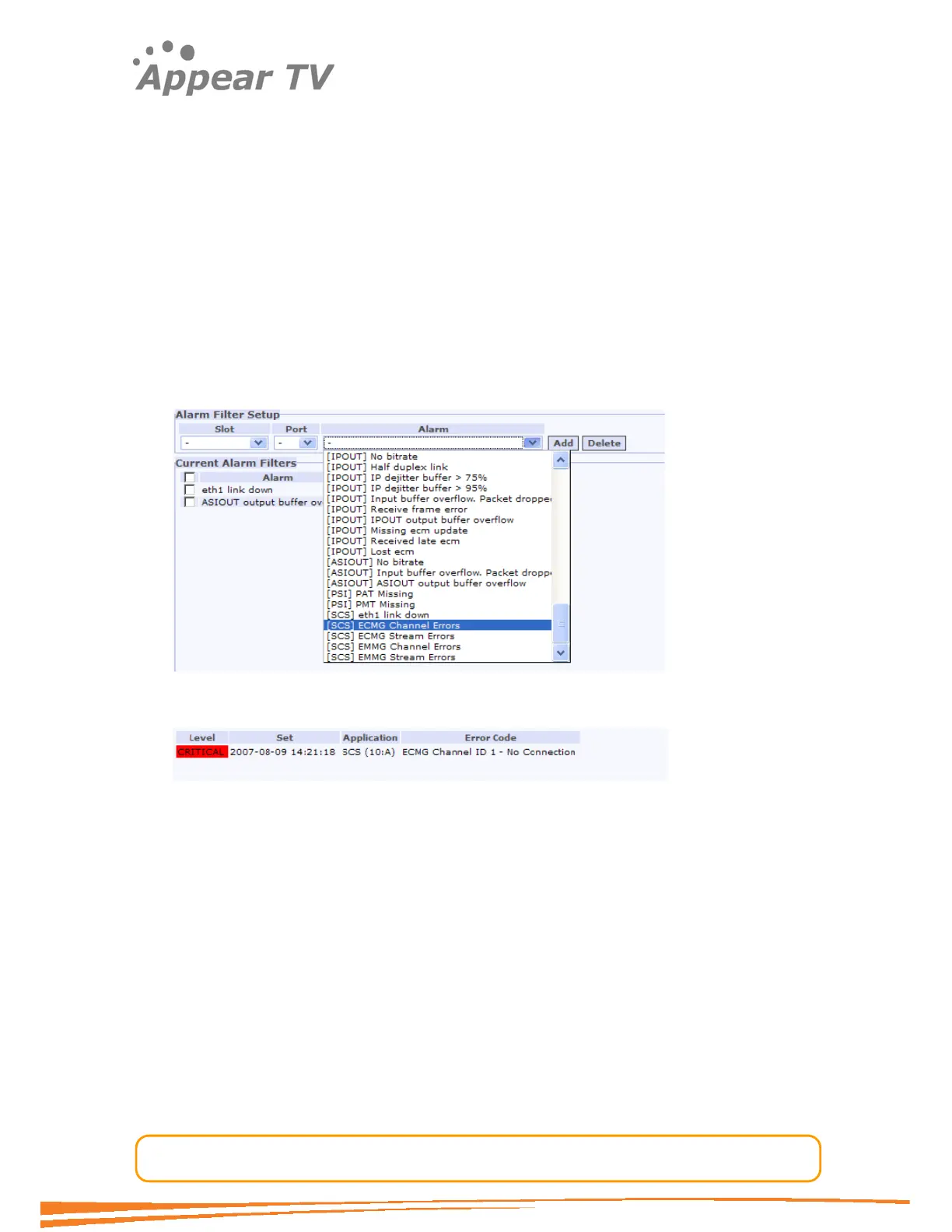Figure 52 and Figure 53 list the alarms for the SCS cards Channel Errors alarm.