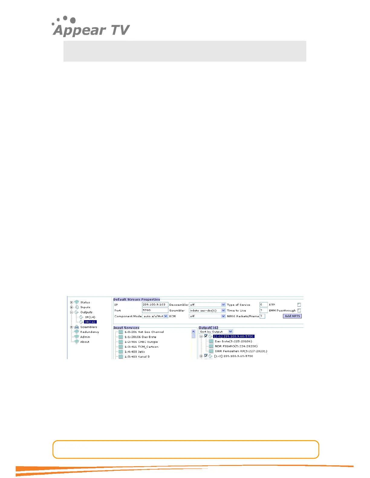 (MPTS) for an IP output card. This description is also applicable for the ASI output,