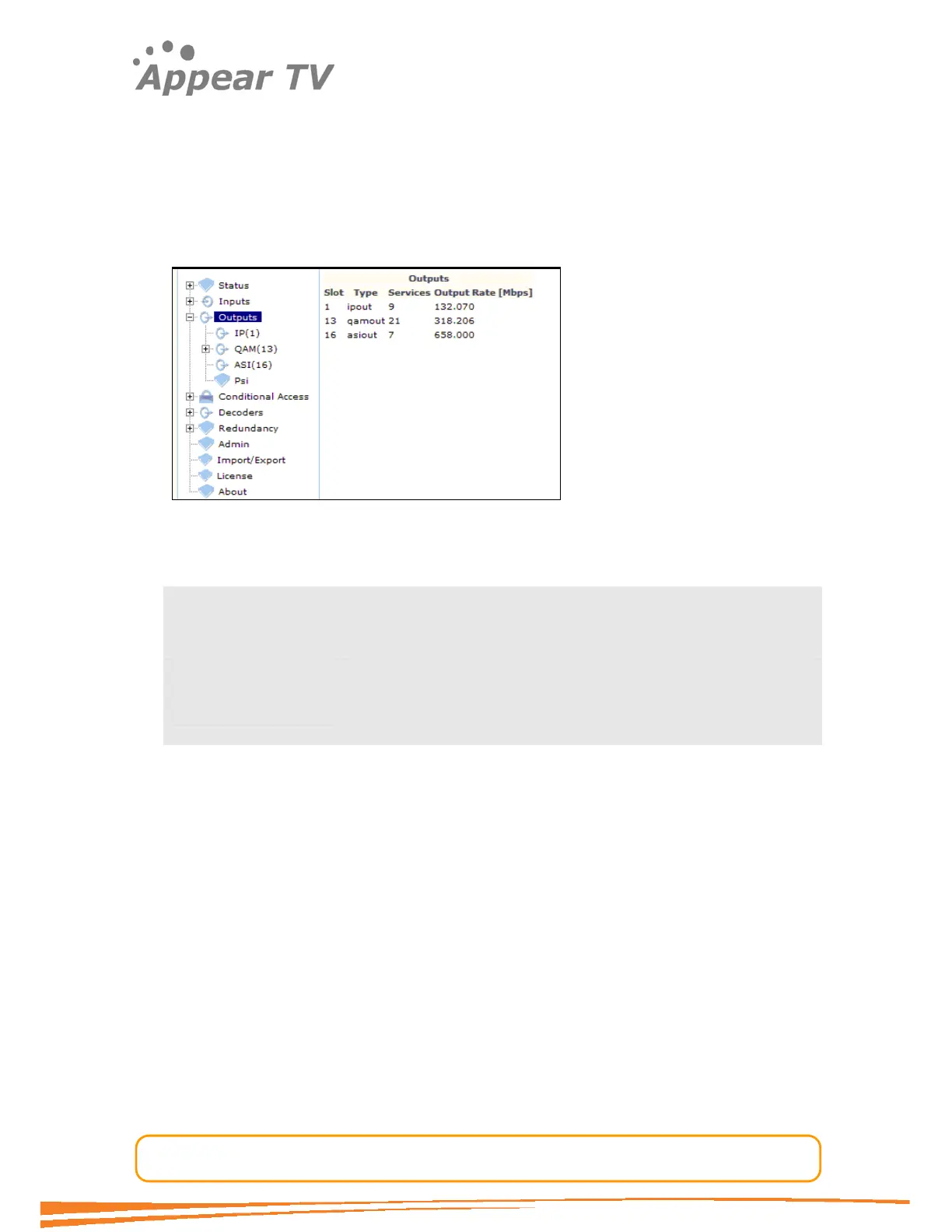 Output Rate [Mbps] the total data rate of all configured services. The rate shown