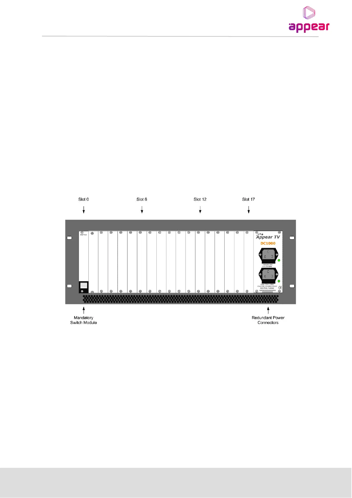 module can be placed in slot 17 for some redundancy configurations. The remaining 16 slots are identical and can be