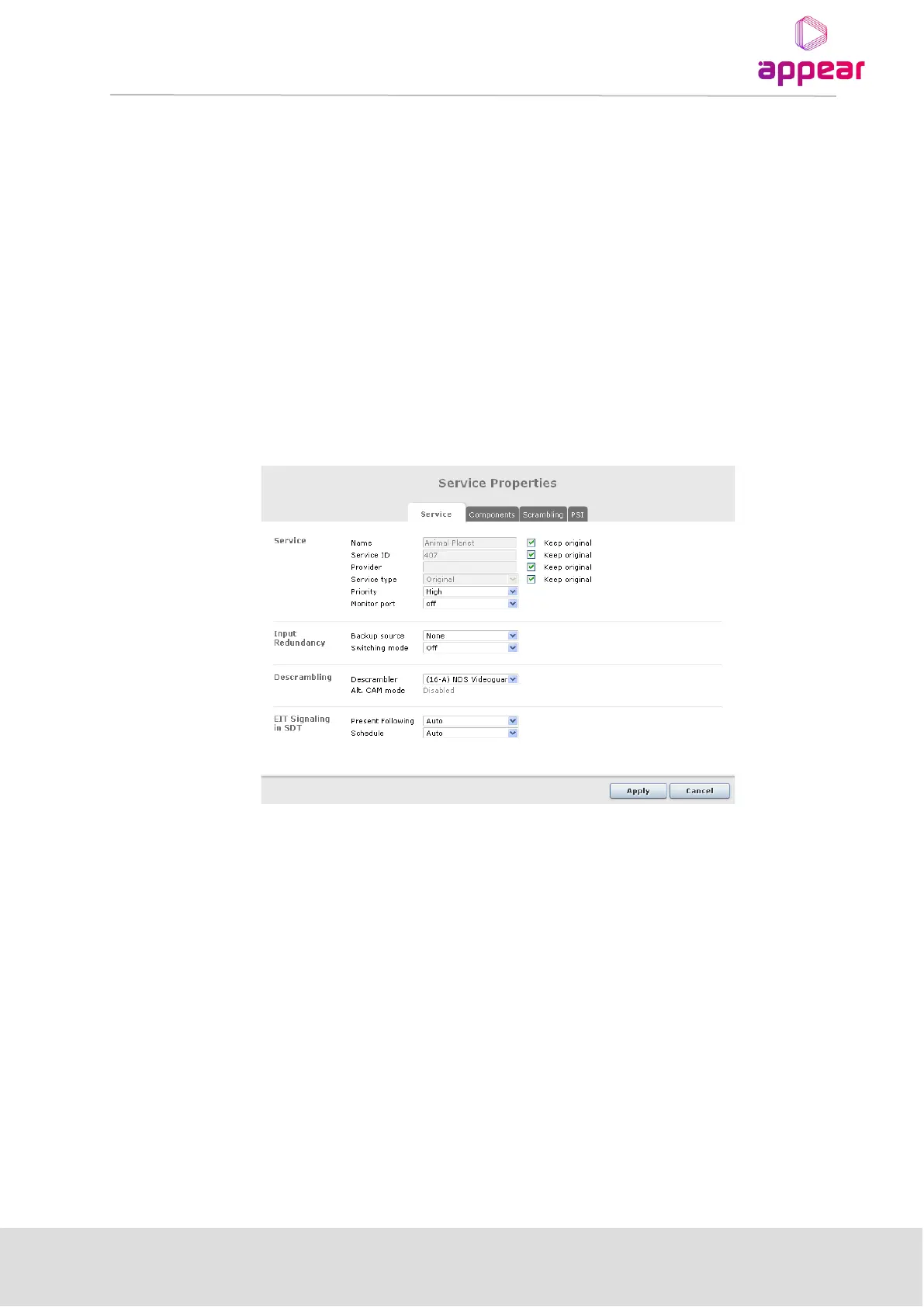 Access Modules (CAM’s). Each Common Interface slot supports the descrambling of one or more services