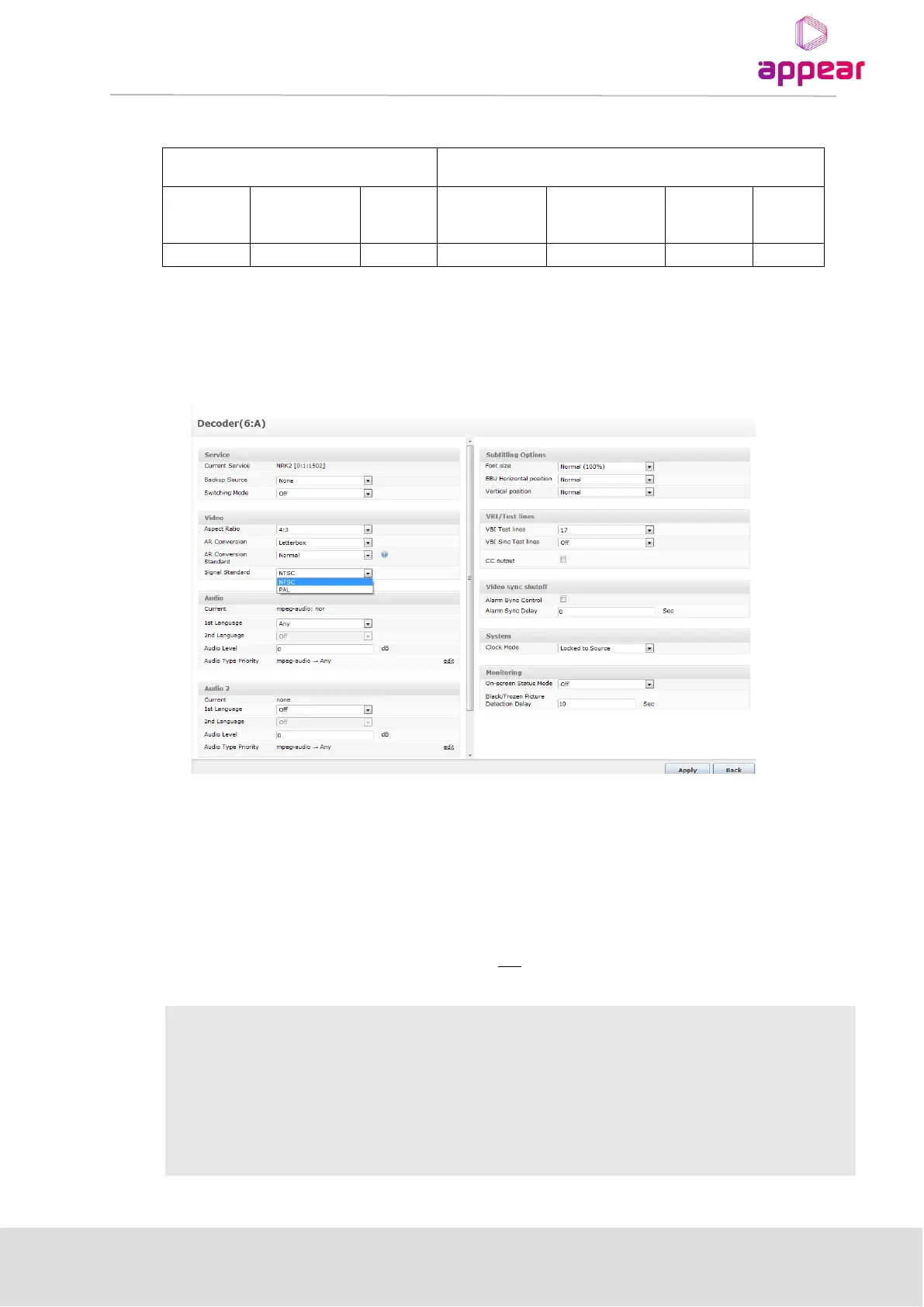 The ADM supports both PAL and NTSC output. Setting this to the NTSC mode will make several NTSC related