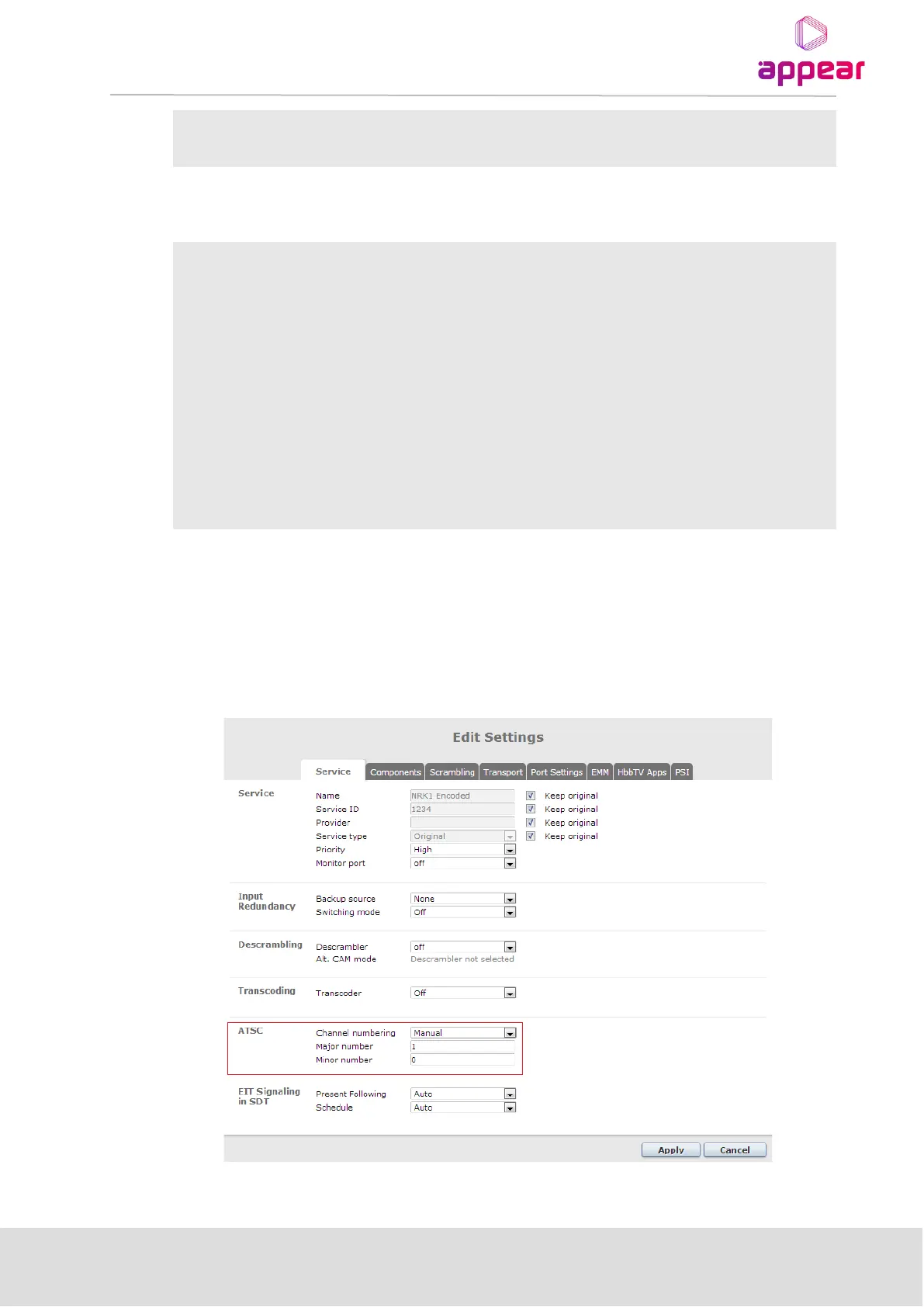 For each outgoing service, it is possible to manually set the Major and Minor channel number if ATSC profile is