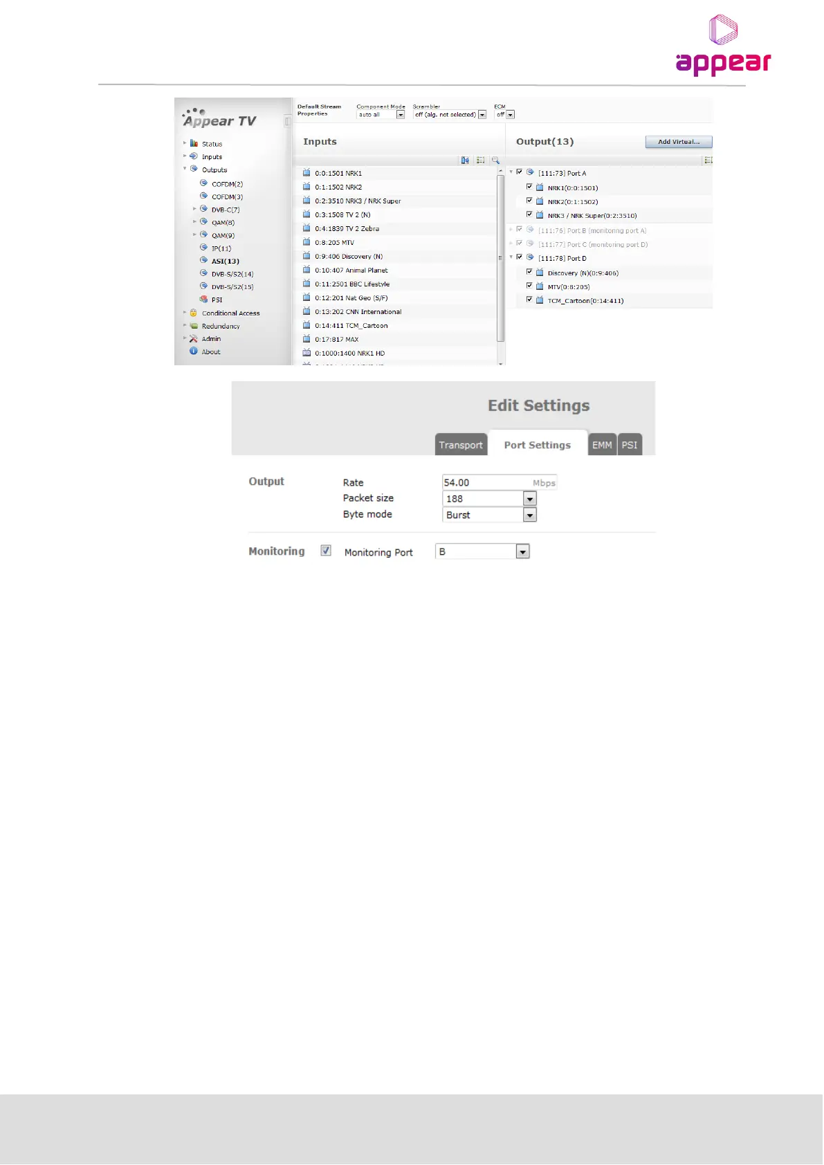 Although the QAM output has two physical outputs, it carries up to sixteen transport streams. Internally these