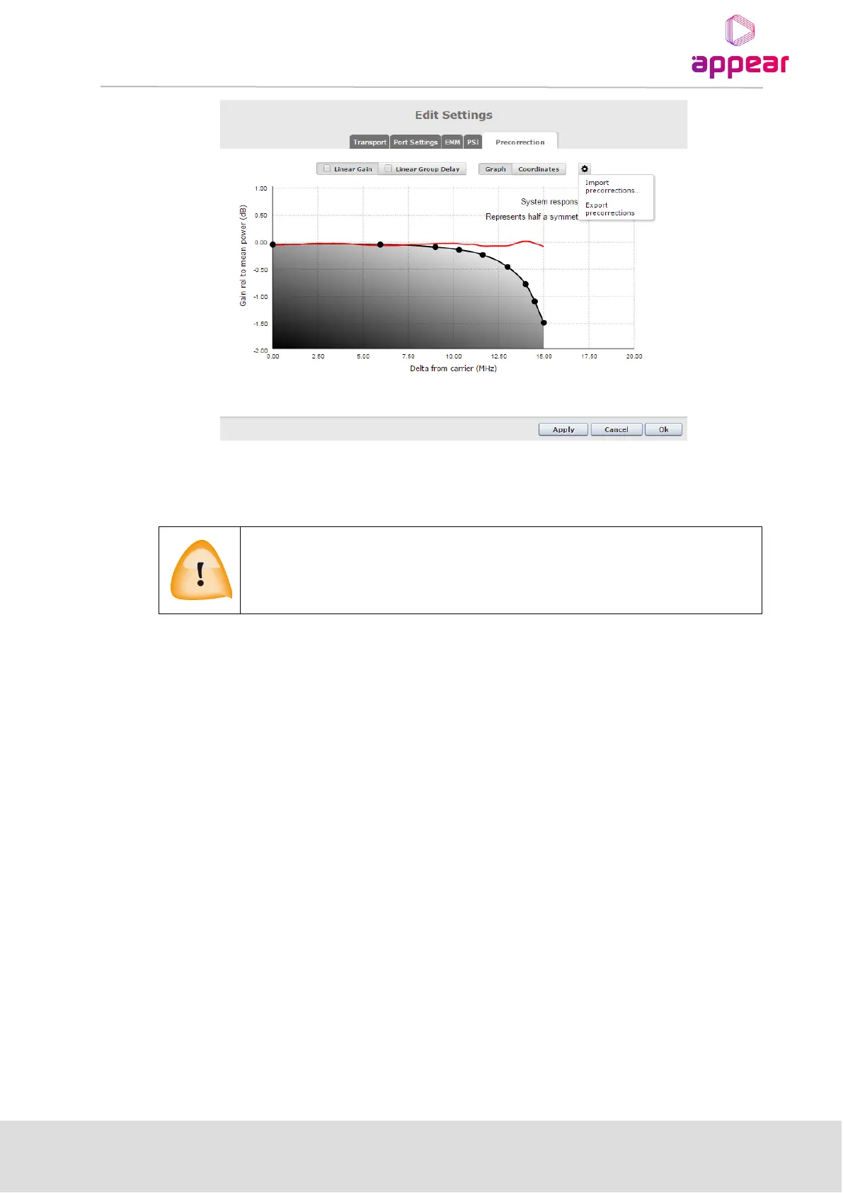 Once configured, the Linear Gain or Linear Group Delay settings can be enabled by marking the checkbox in the