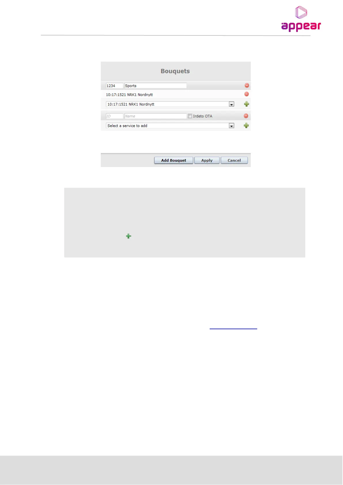 check box. It is only possible to add one Irdeto OTA bouquet.