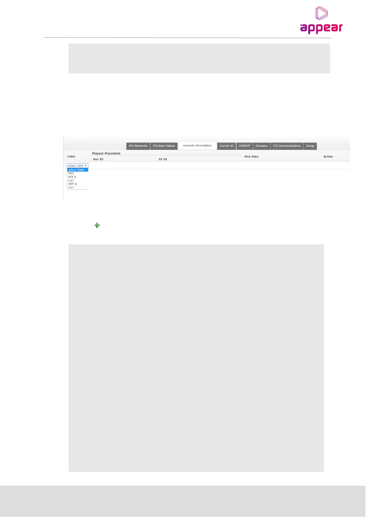allows insertion of arbitrary PSI descriptors into selected DVB output table descriptor loops. This feature is useful