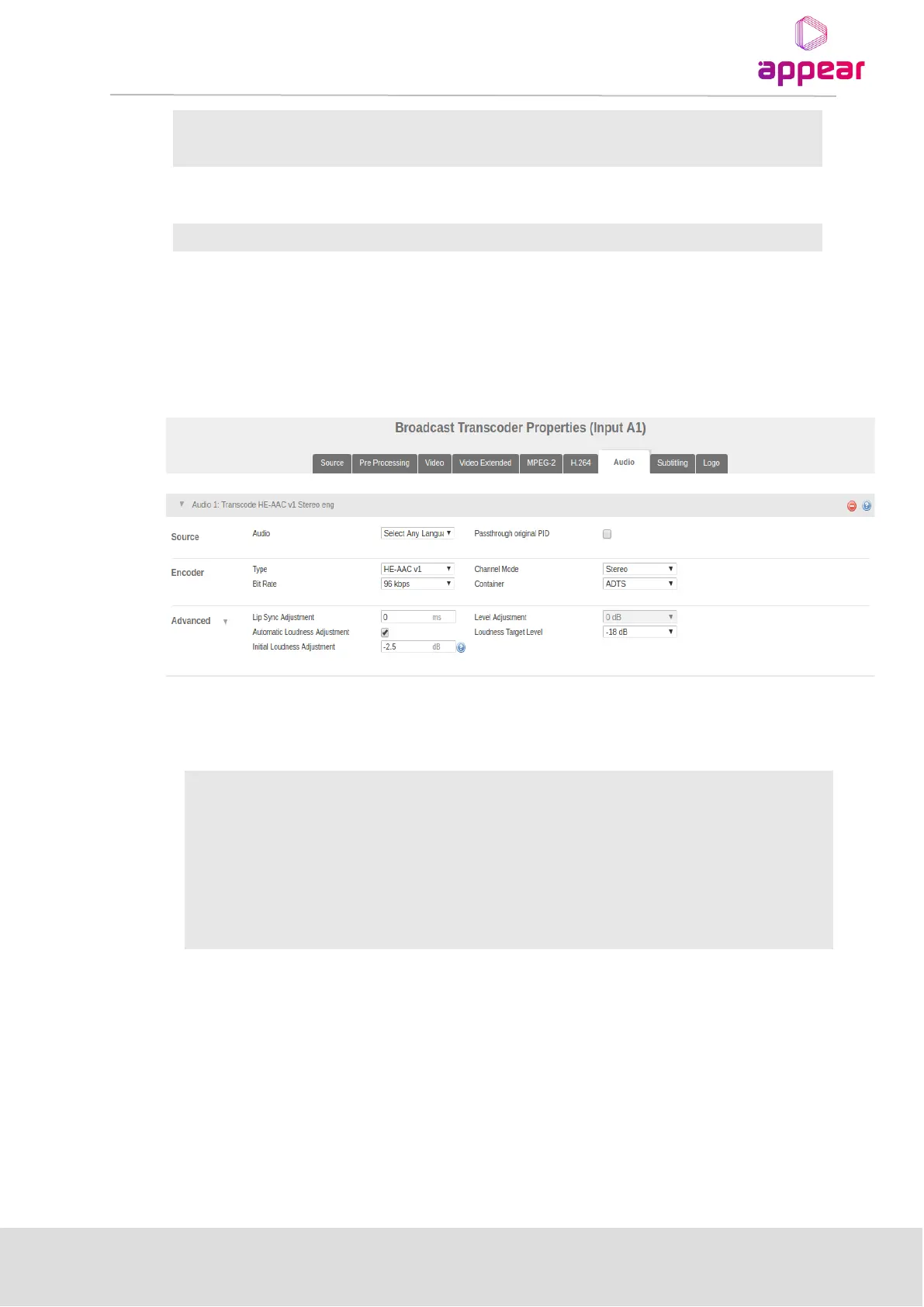 9.2.6.4 Audio Automatic Levelling Adjustment Configuration