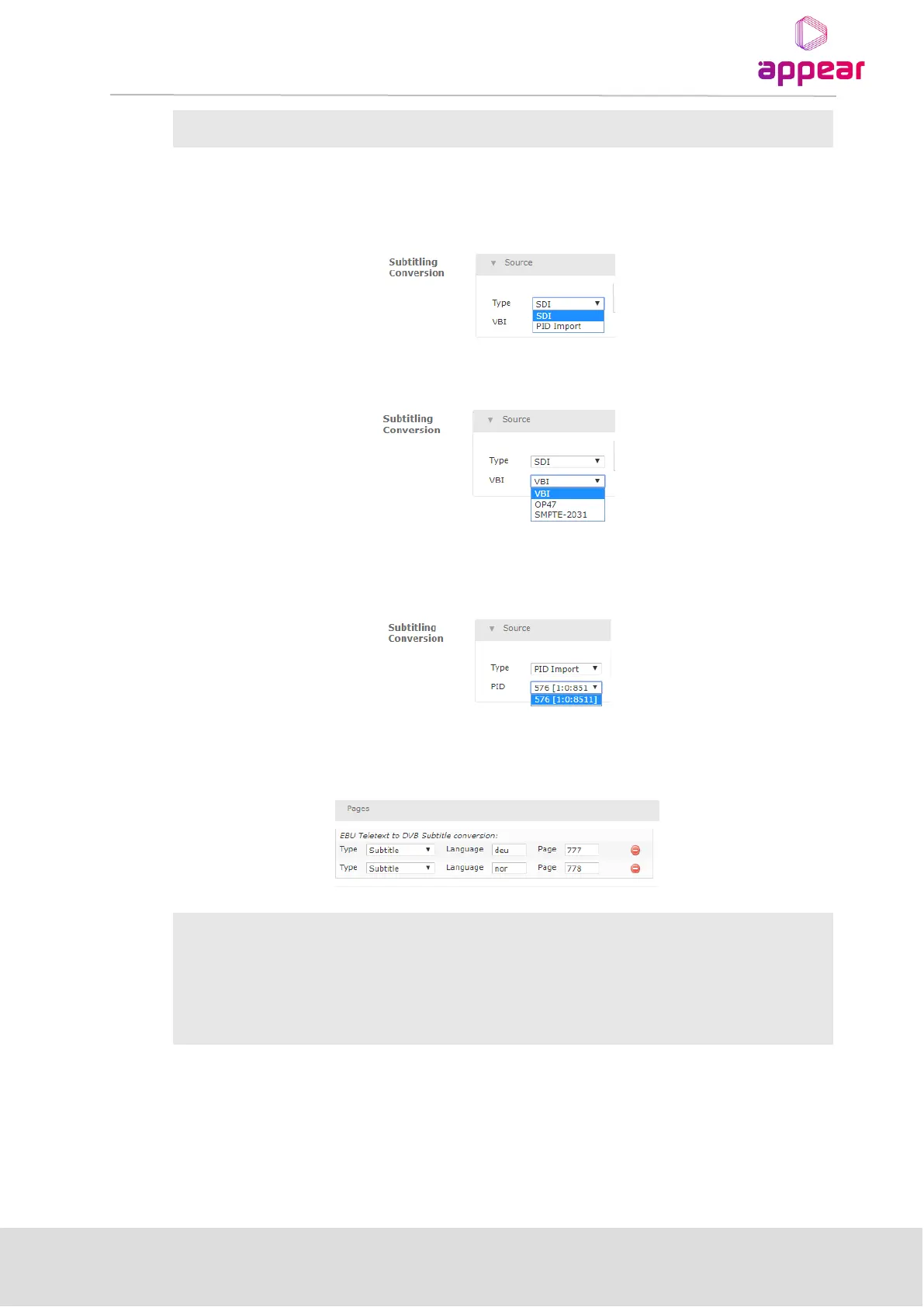 If “PID Import” is selected instead, the Teletext/EBU subtitles PID will be imported from a different input source,