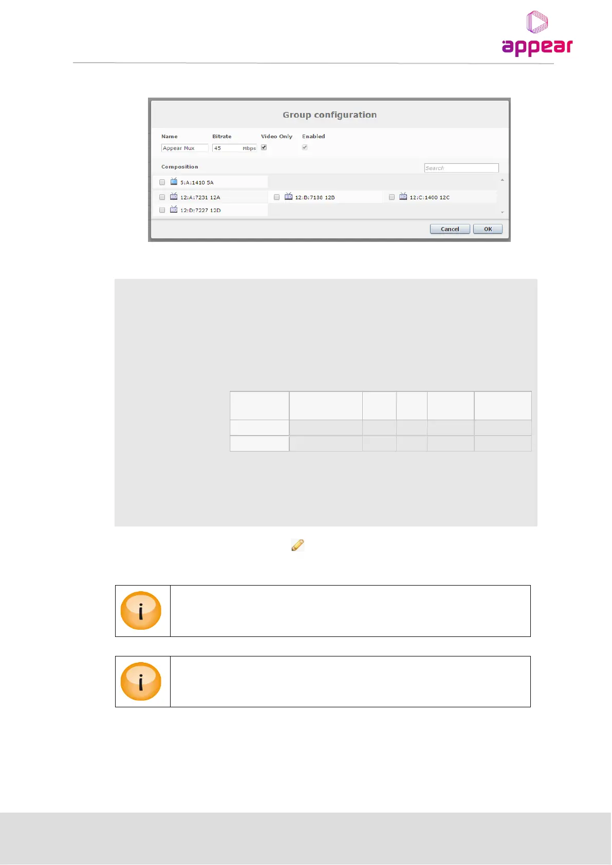 To edit an existing Statmux group, click on the next to the group. The above dialog will then be presented.