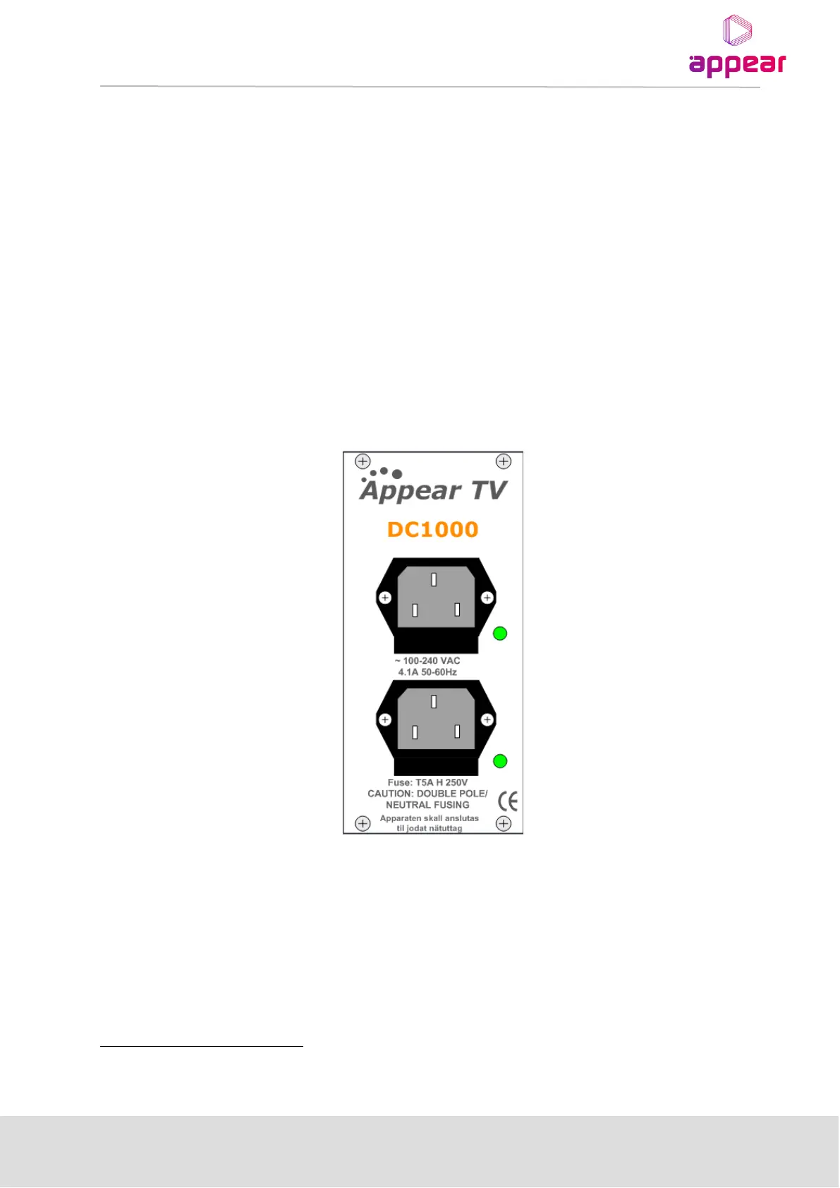 El chasis 1RU, en los modelos DC1100/1101, SC2100/101 y MC3100 /3101, cuenta con una entrada de 100-240 V