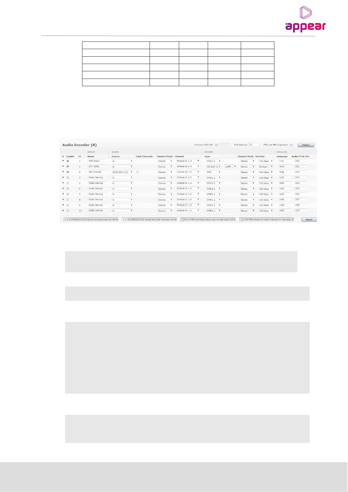 In Audio Transcoding mode the module is capable of encoding up to 32 services from either SDI or AES67 (IP)