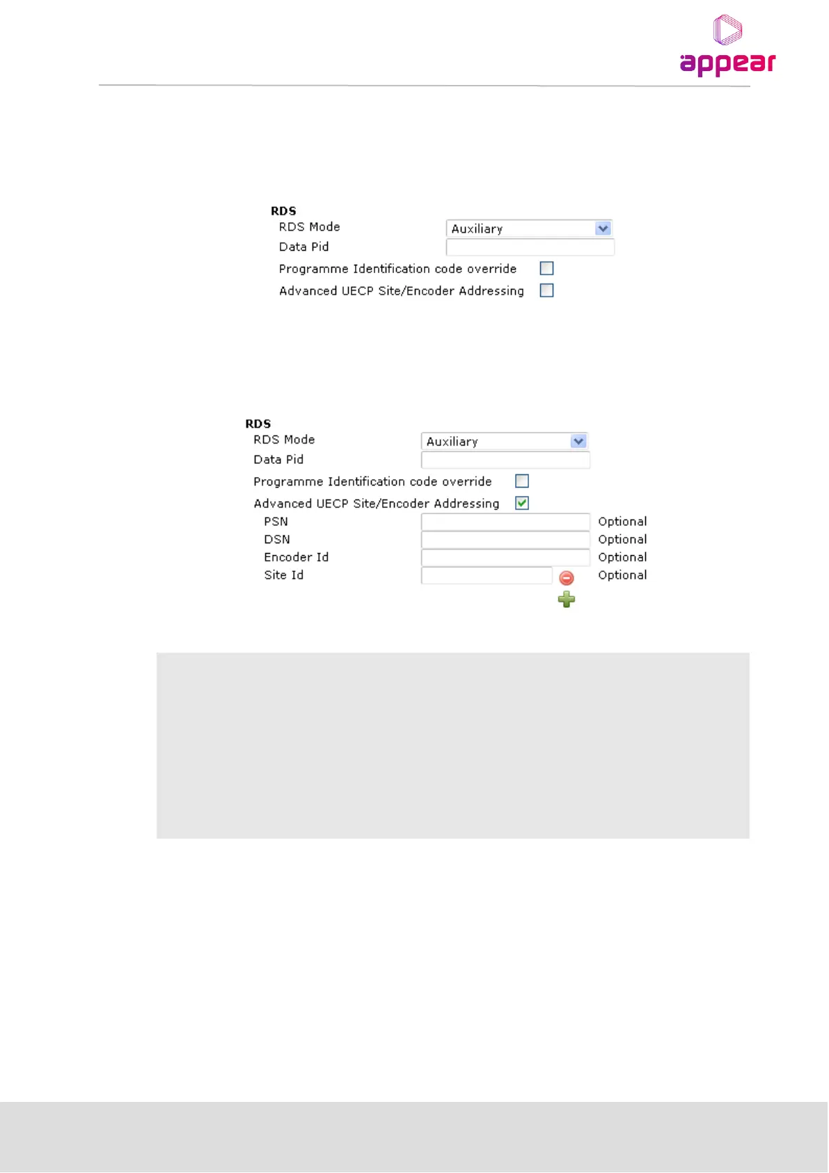 The Advanced UECP Site/Encoder Addressing choice enables access to UECP data filtering settings. If the