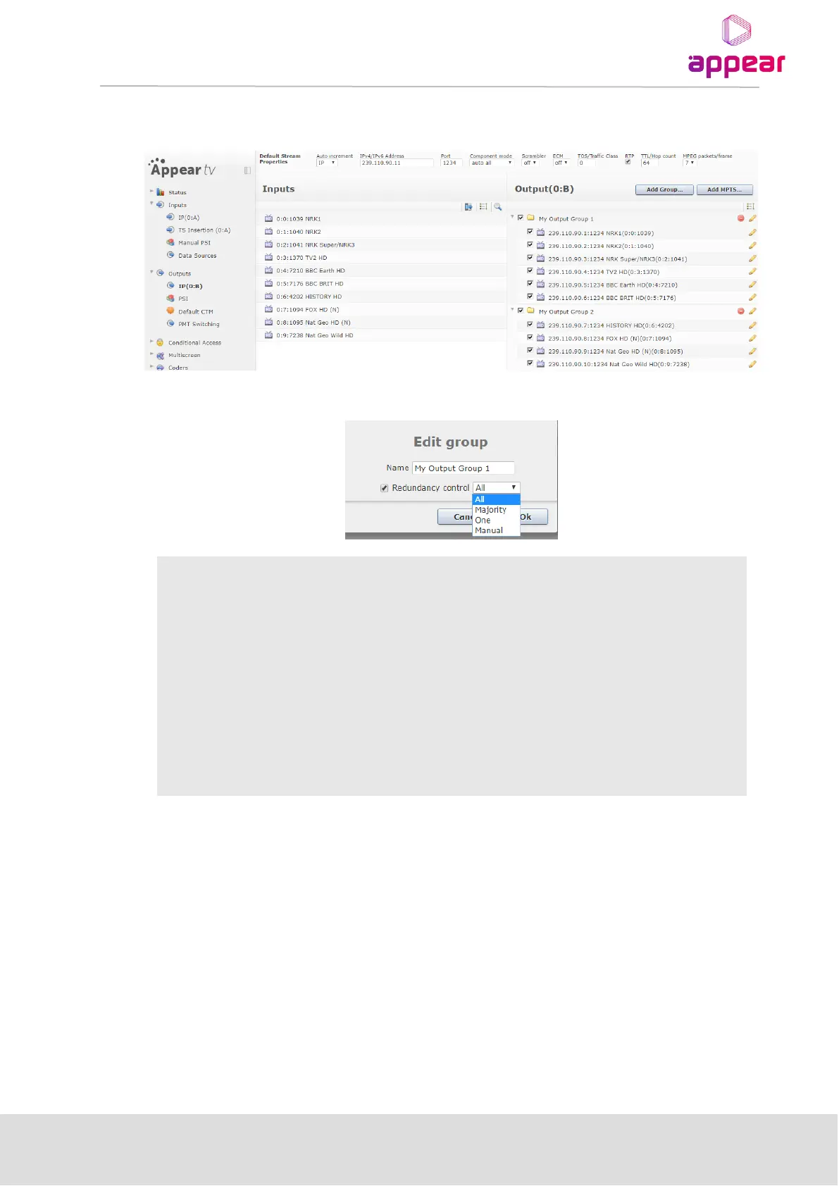streams. When enabled the output redundancy will monitor the stream status and if any errors perform the