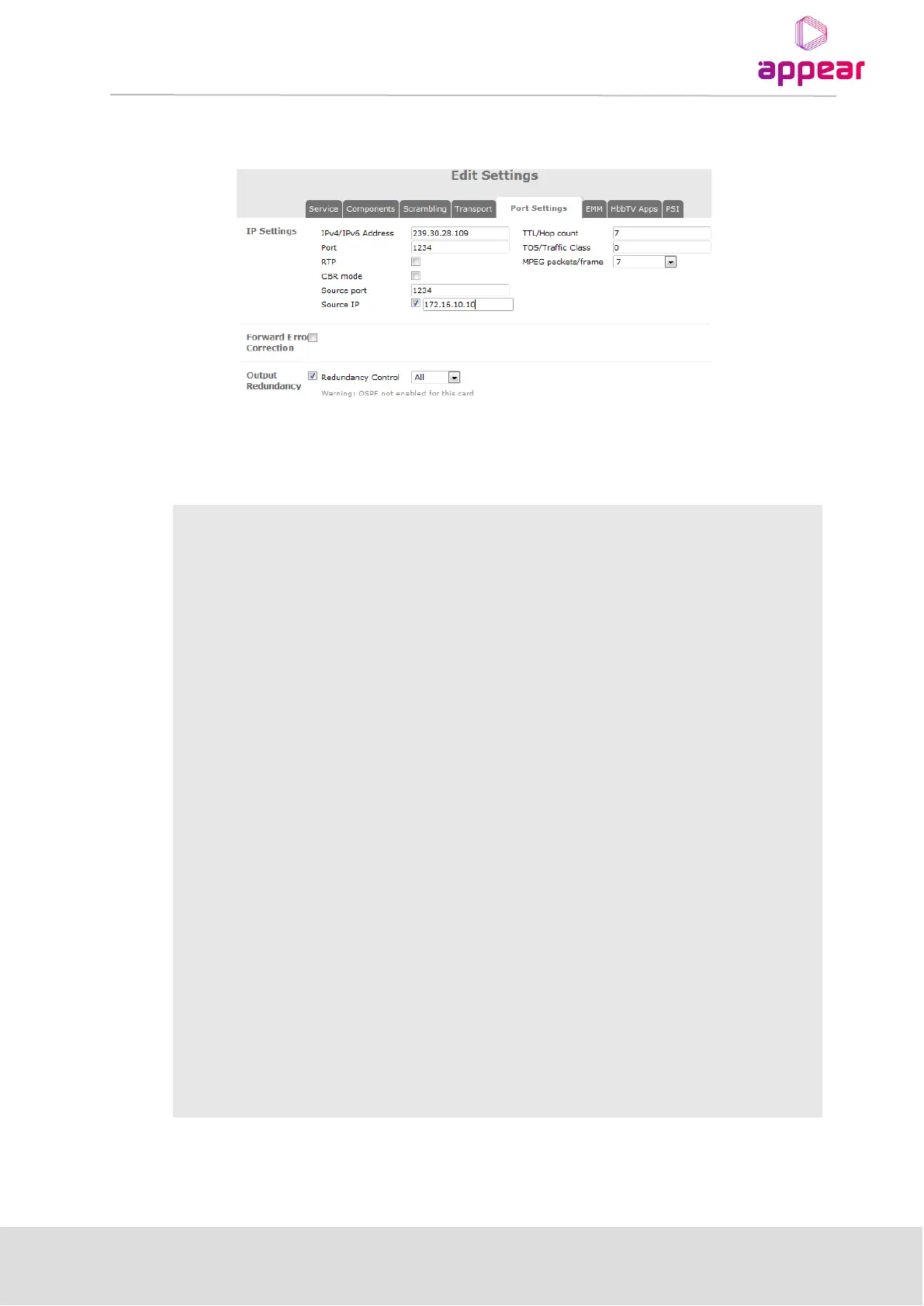If not set then the IP address of the Dataport will be used for all streams. The