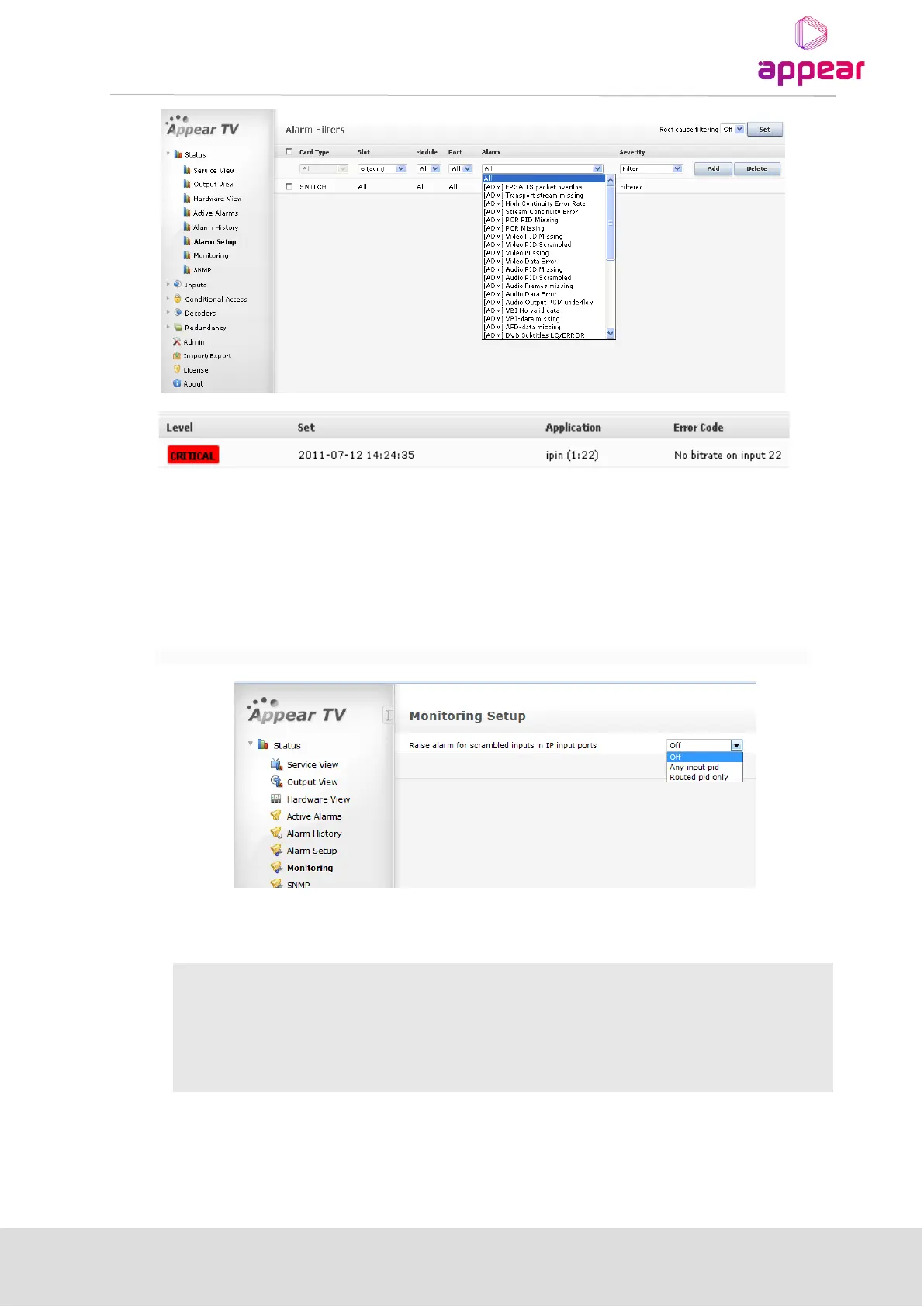 Raise alarm for scrambled inputs in IP input ports in below of following condition selected by user.