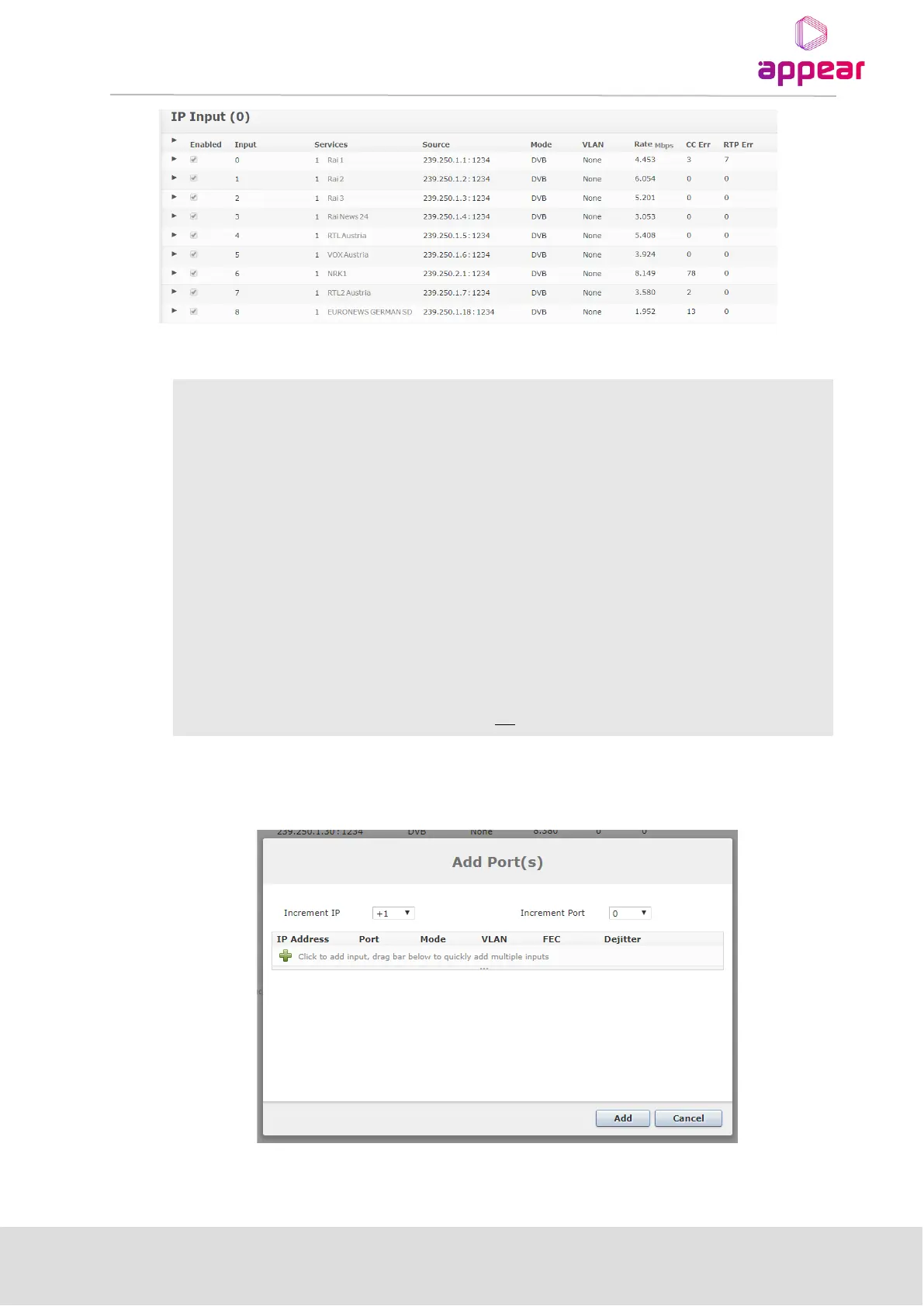 To add new input streams to the IP Input, first click the Add button in the top right corner. You will then be
