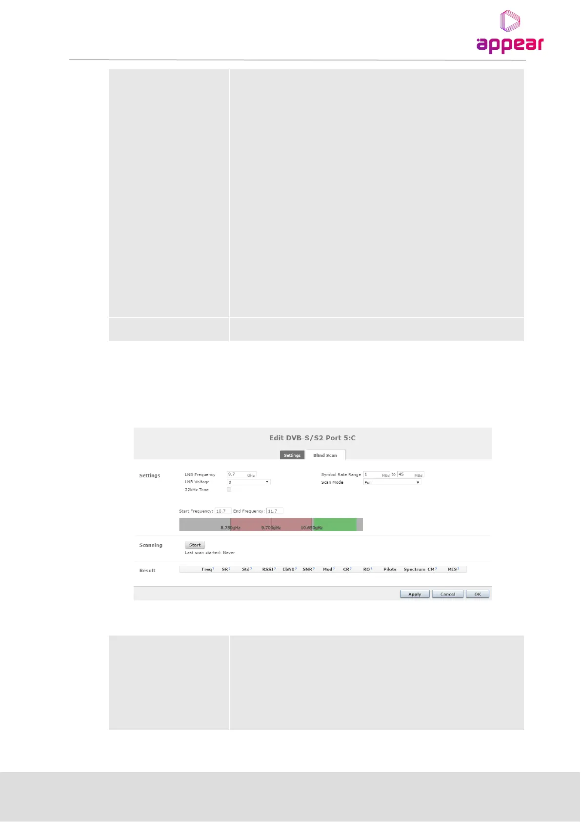The Edit Port dialog also offers a Blind Scan tab (SR-200). This feature is used to scan the input signal for DVB-