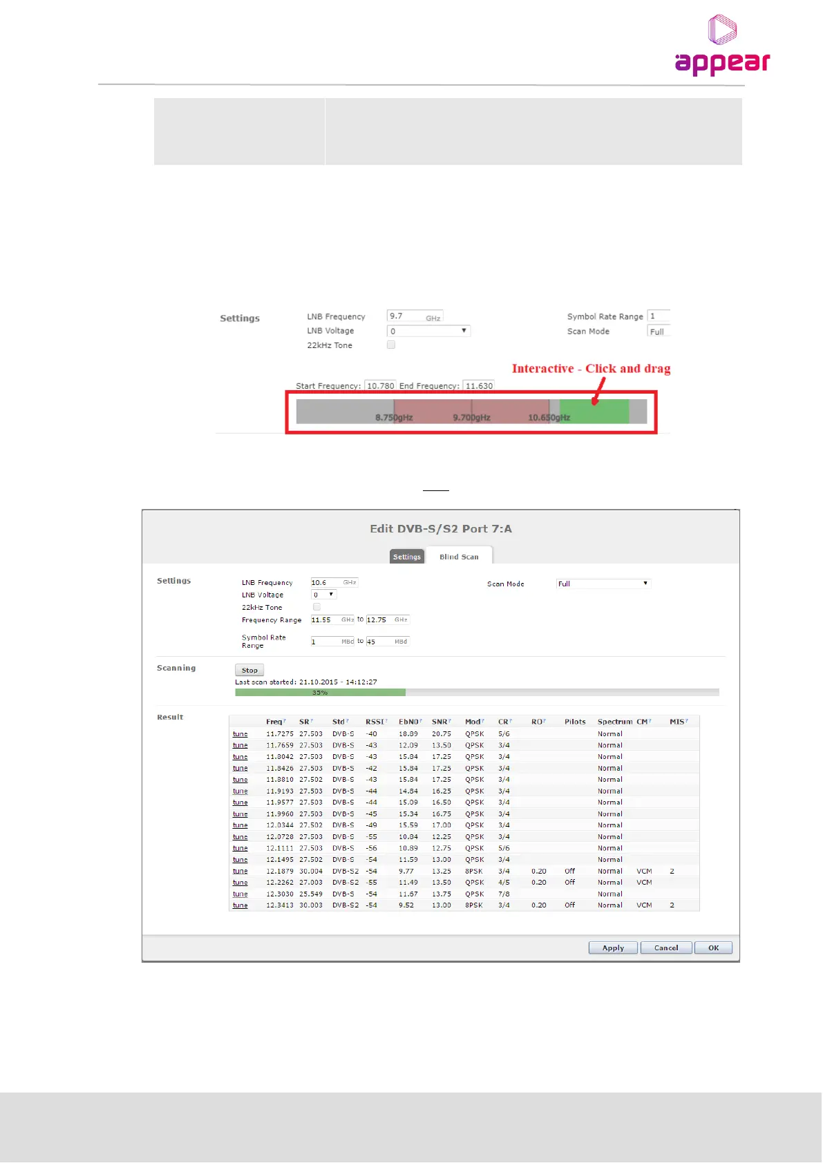 and end frequency must be within the valid values according to the LNB Frequency. Use the interactive