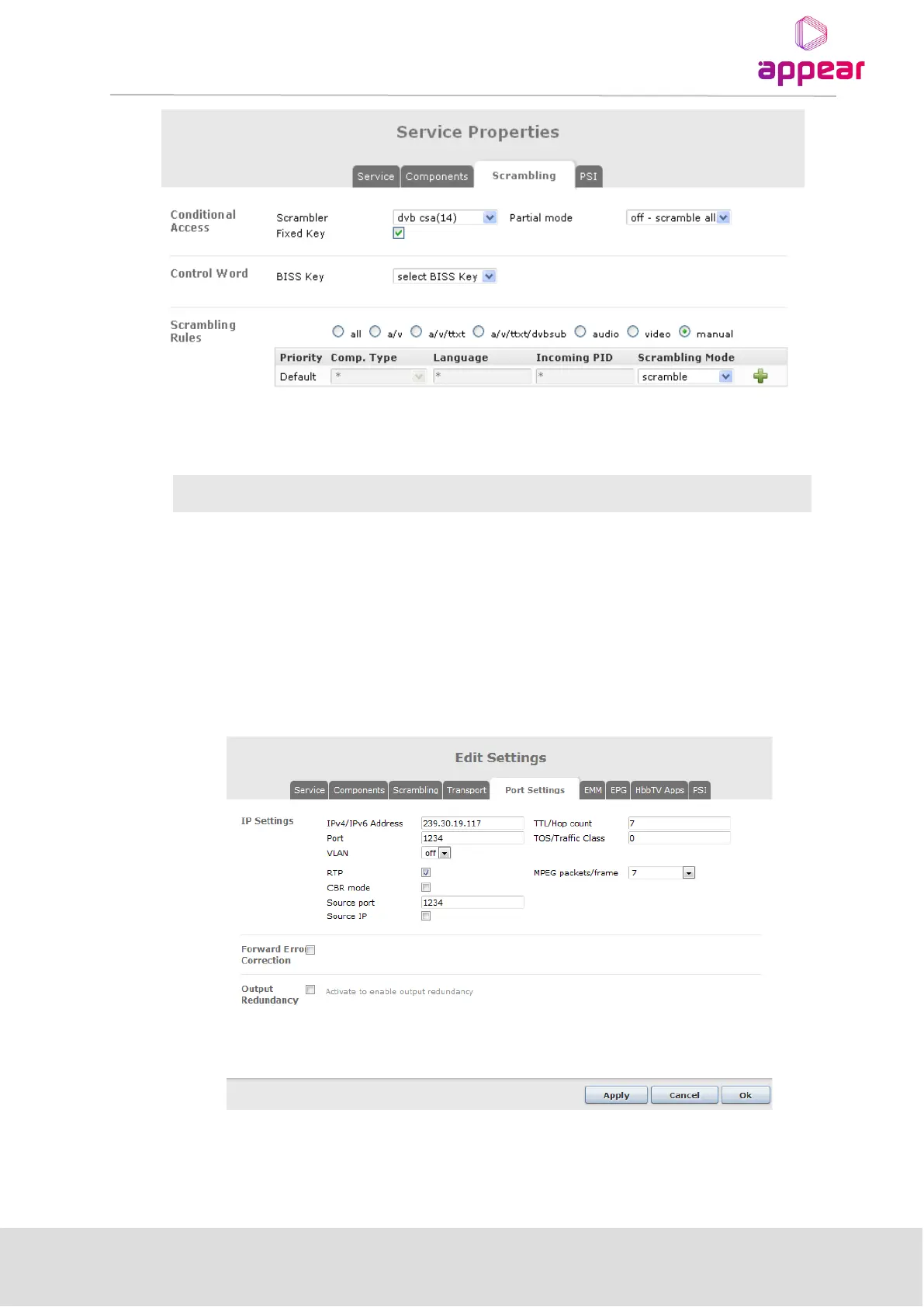 Appear TV XC5100 - Output Port Settings; IP Output Module