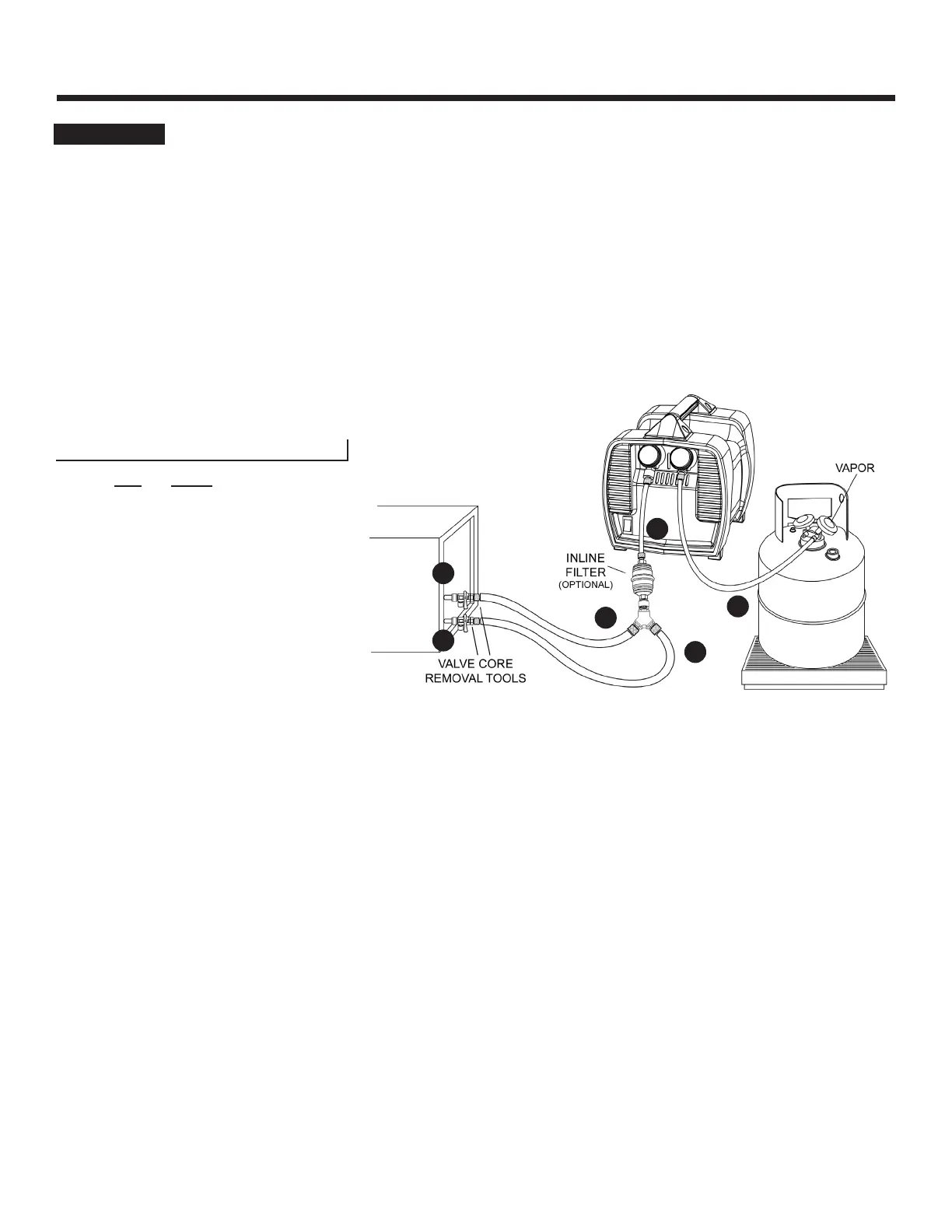 B. Connect a Valve Core Removal Tool to othe AC/R System Vapor Port.