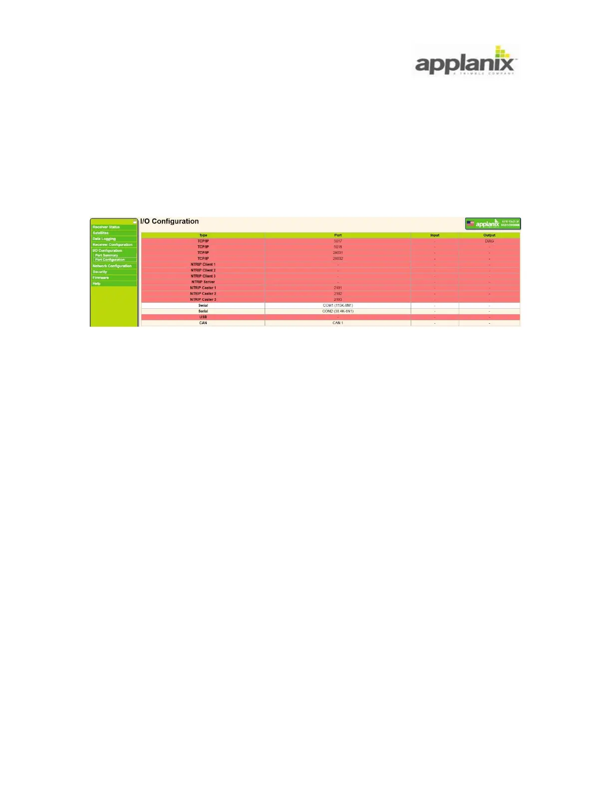The I/O configuration refers to output message selection for specific port (see Figure 38).