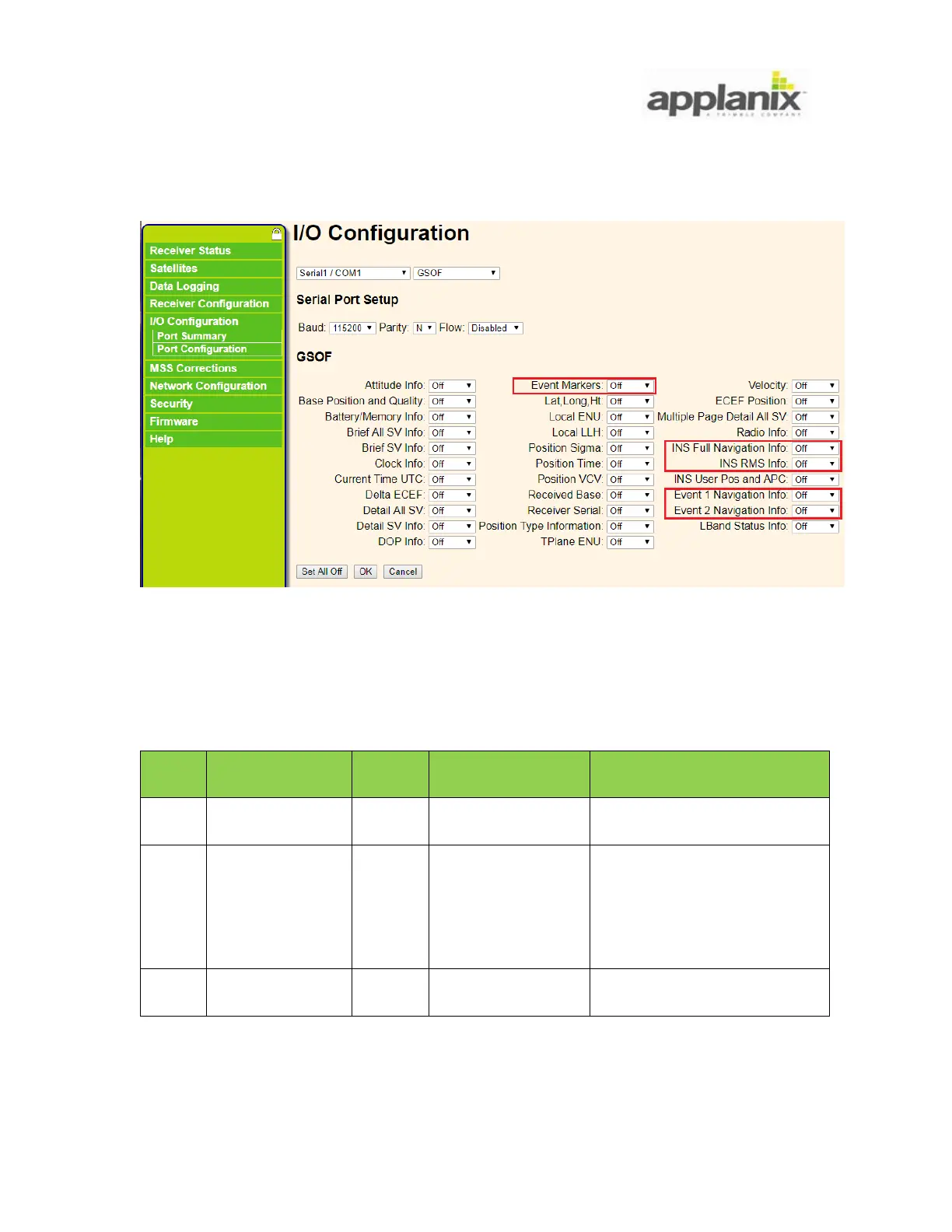 GSOF messages are outputted as a part of Report Package 40H represented in Table 5:
