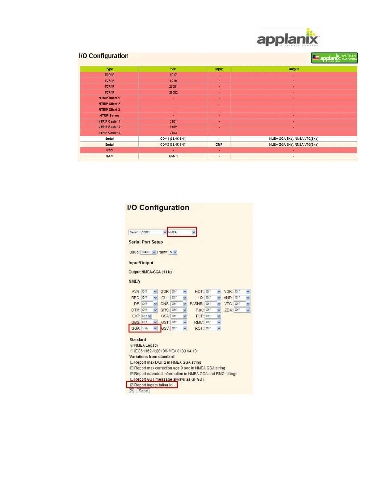Next, make the required settings for the COM port by enabling output of the NMEA