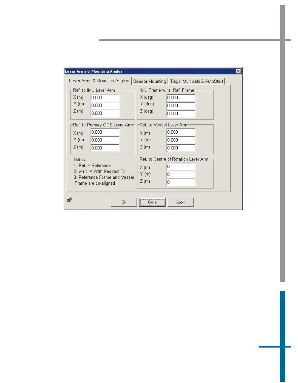 the lever arm distances and mounting angles. Once these values are entered,